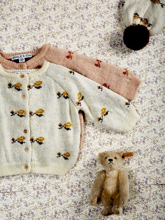 Floral Alpaca Wool Baby Cardigan - Rose