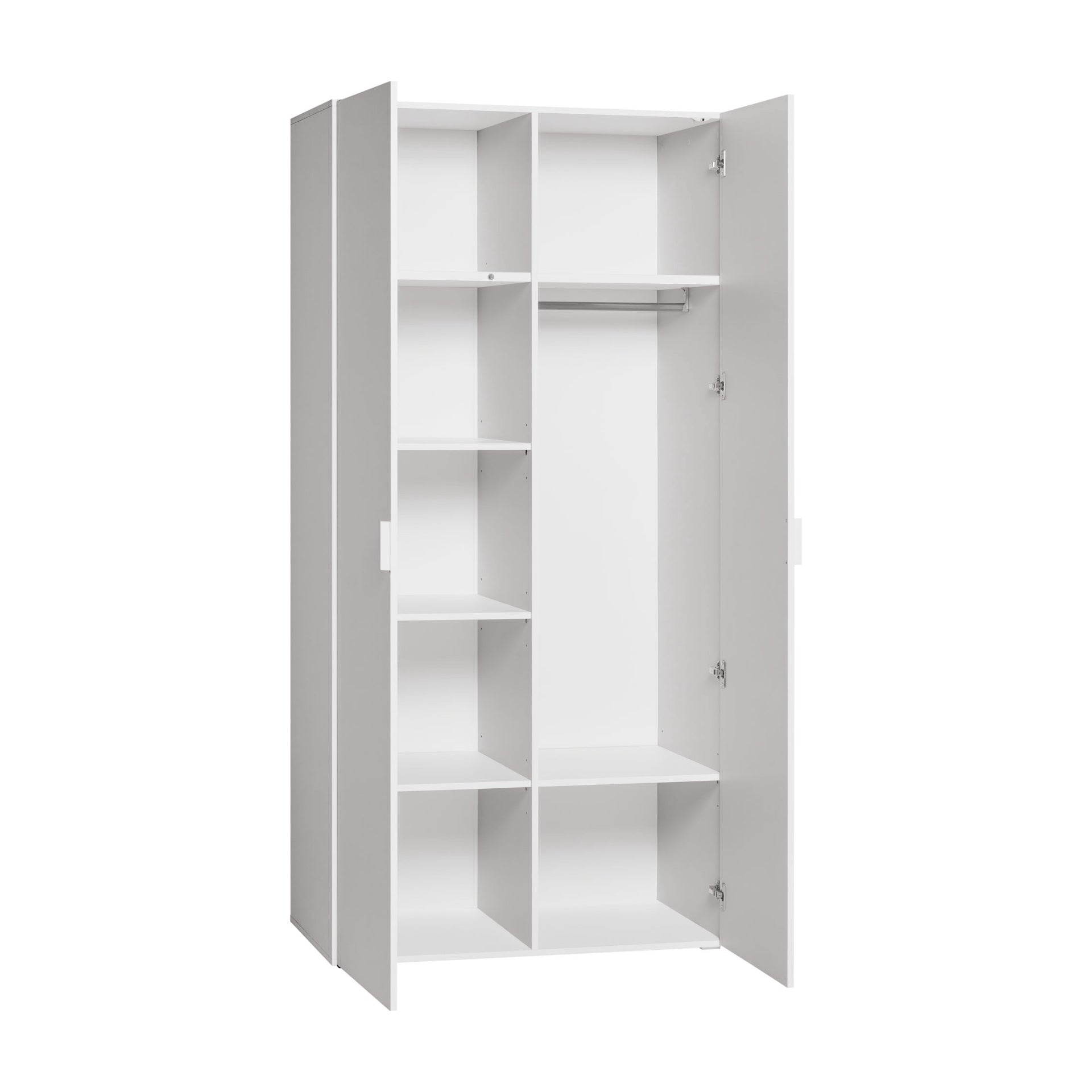 Warm shades of grey/beige and white will create a cosy atmosphere, ideal for a relaxed atmosphere of a child's bedroom. Simple and classic form of the wardrobe provides enough space for storing children's clothes.