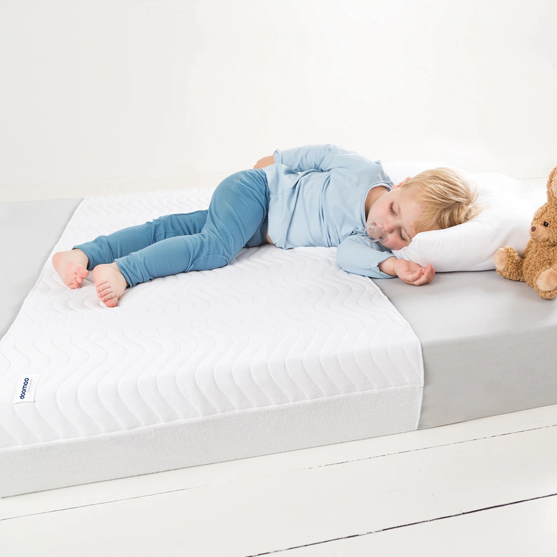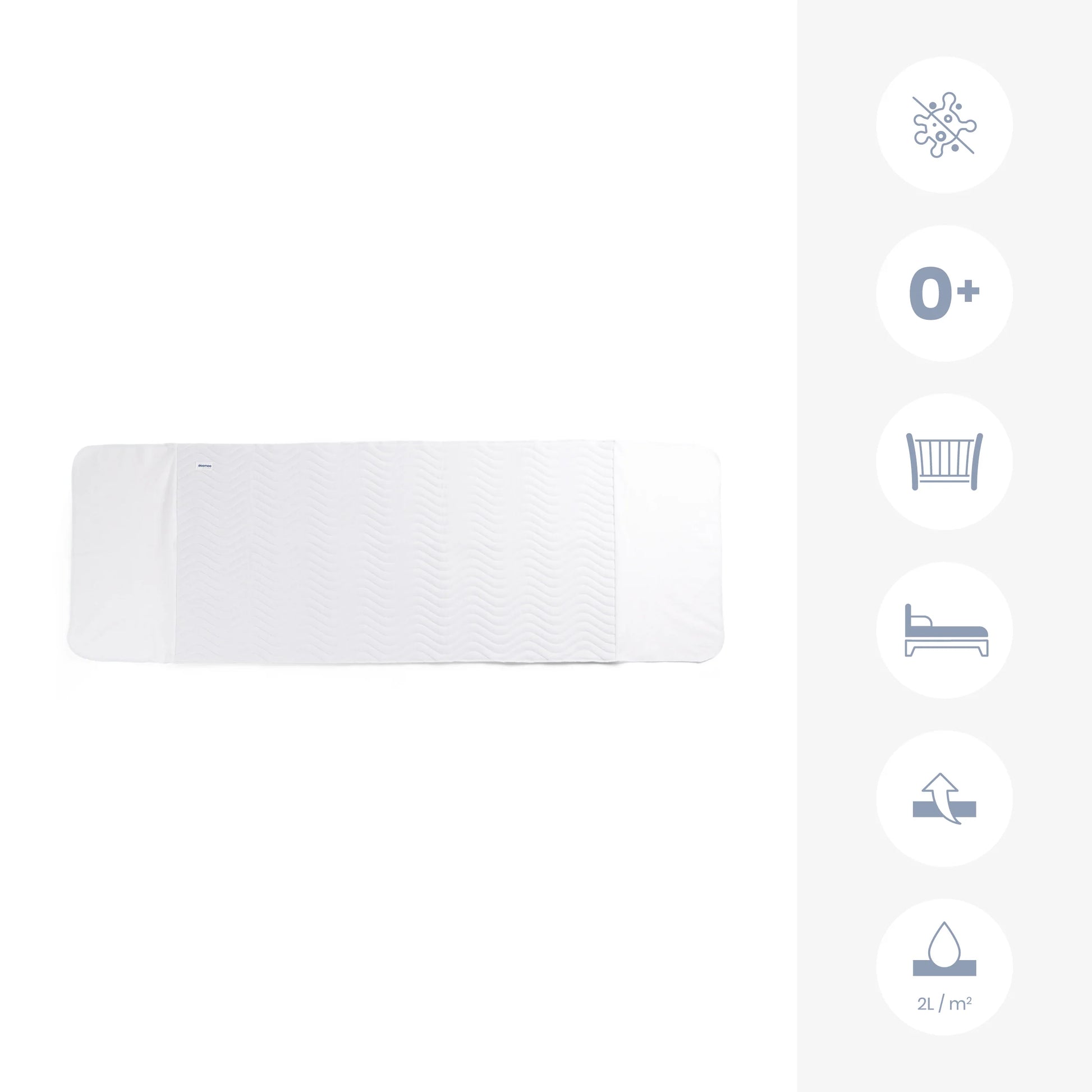 Absoplus absorbs liquid in depth, so the surface of this cover stays dry and your little one keeps on sleeping like a rose. Thanks to the 5 functional layers, Absoplus has maximum airflow. You can put it directly on top of a sheet and it is super easy to change. The cover is suitable for two bed sizes: Absoplus fits the length of a baby mattress (60 x 120 cm) as well as the width of a standard mattress (90 x 200 cm).