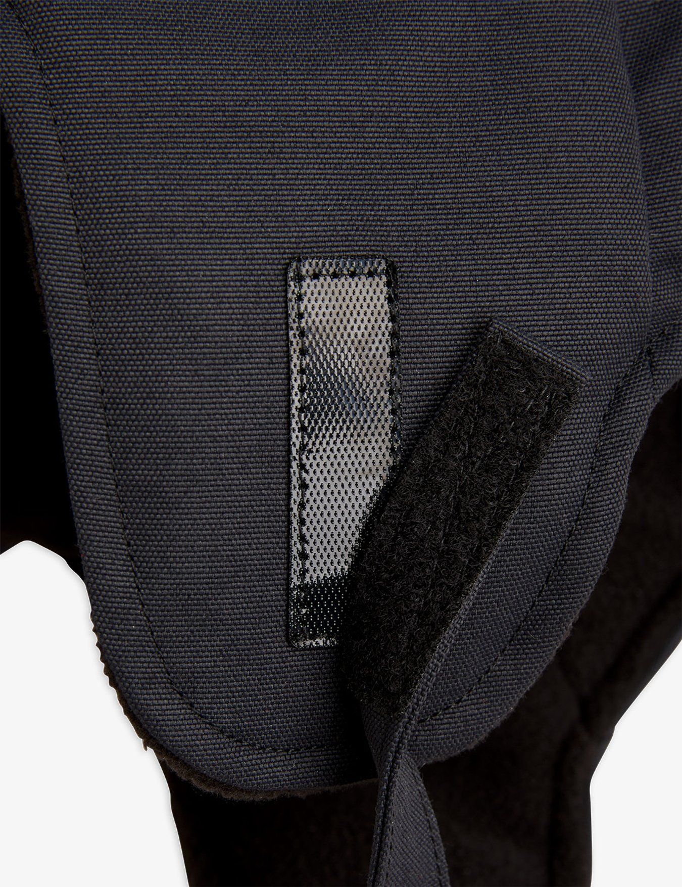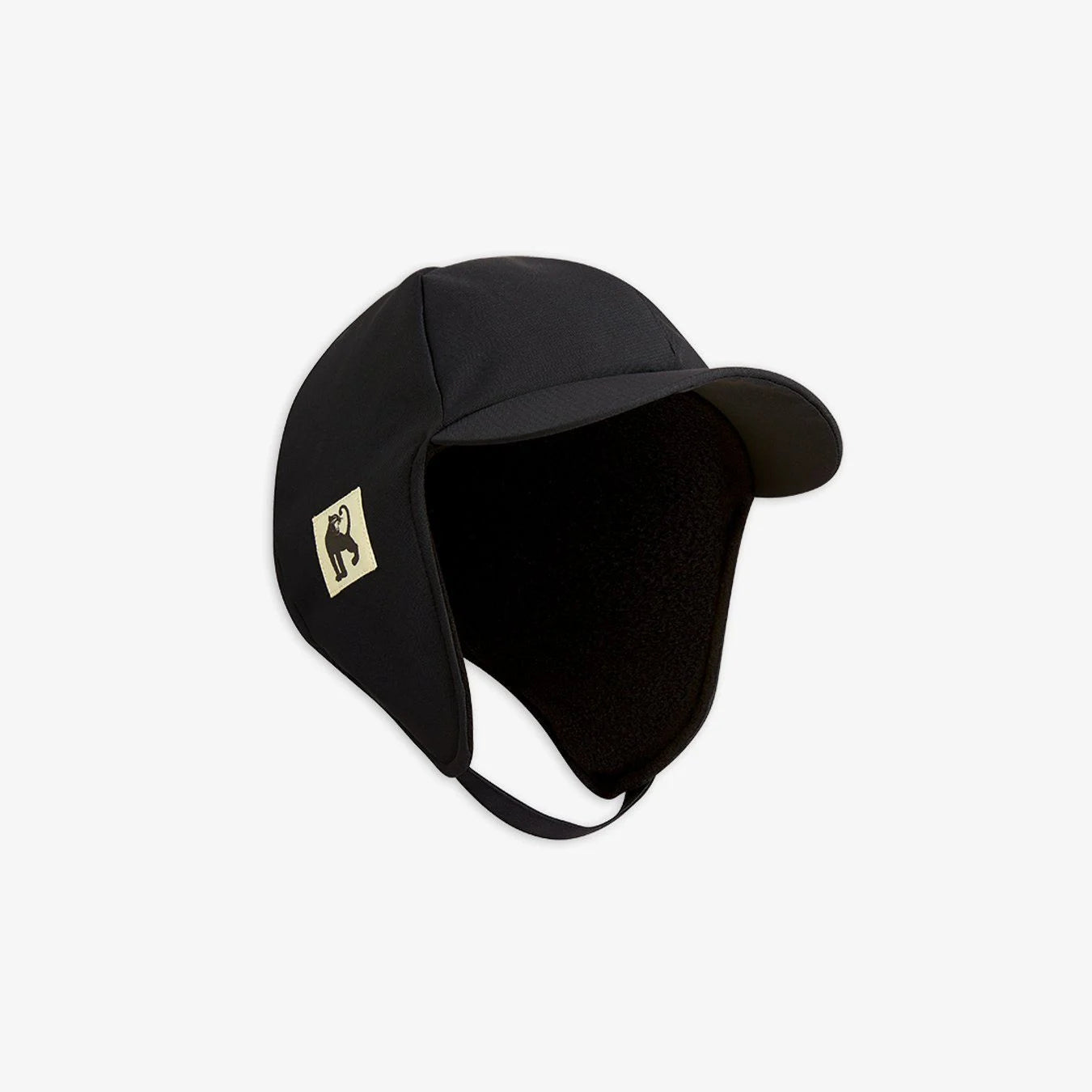 Heavy-duty winter cap made from 100 % recycled polyester. The cap is fully wind- and waterproof with taped seams and a poison free BIONIC-FINISH® ECO coating while maintaining breathability. Designed with microfleece lining and a reflective print on the back of the hat, secured with elastic in the back and a velcro fastened chin strap. Decorated with a Mini Rodini Panther label.