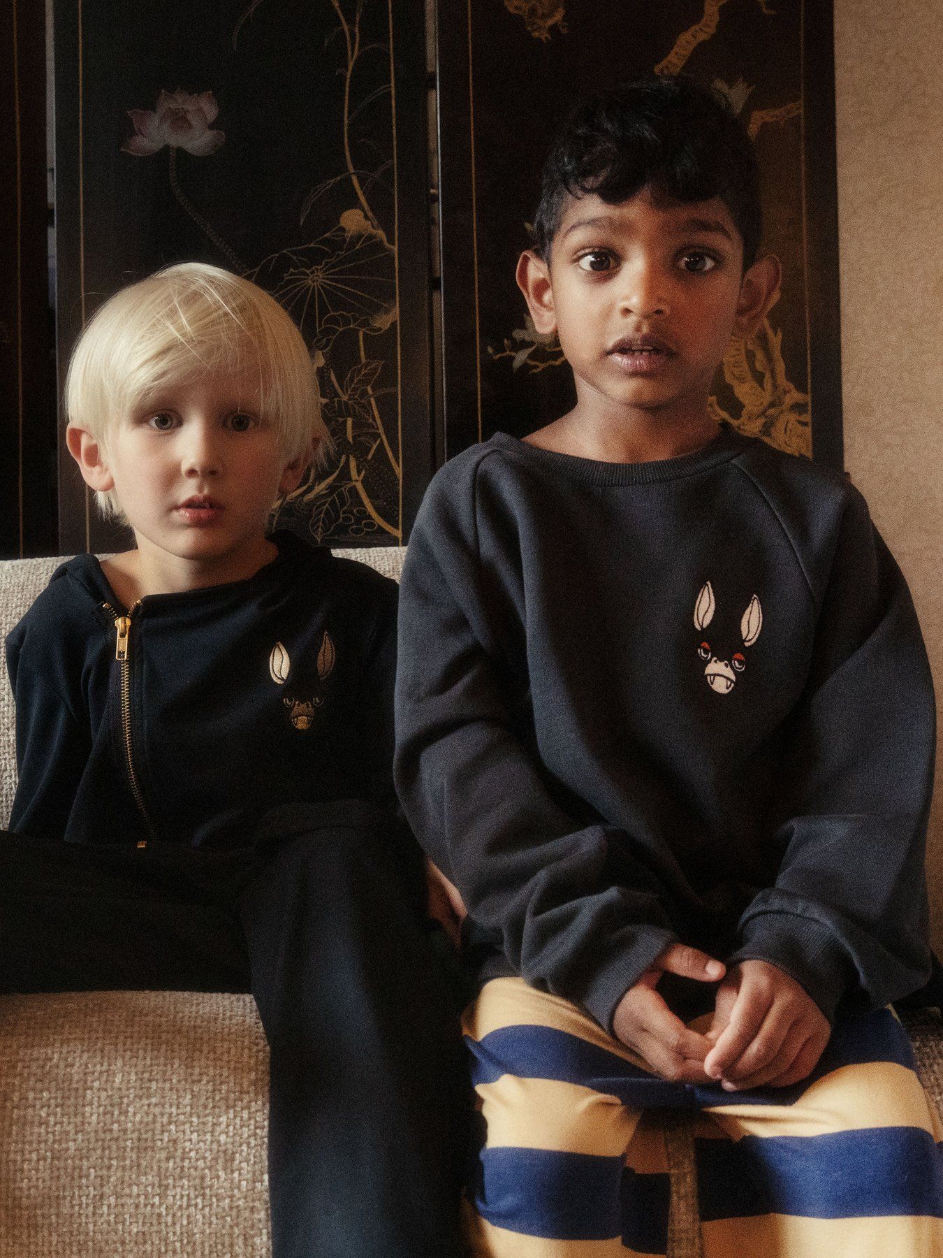 Black sweatshirt decorated with bat wings under the sleeves and an embroidered Bat motif, made in 100 % GOTS certified organic cotton. Perfect for halloween!