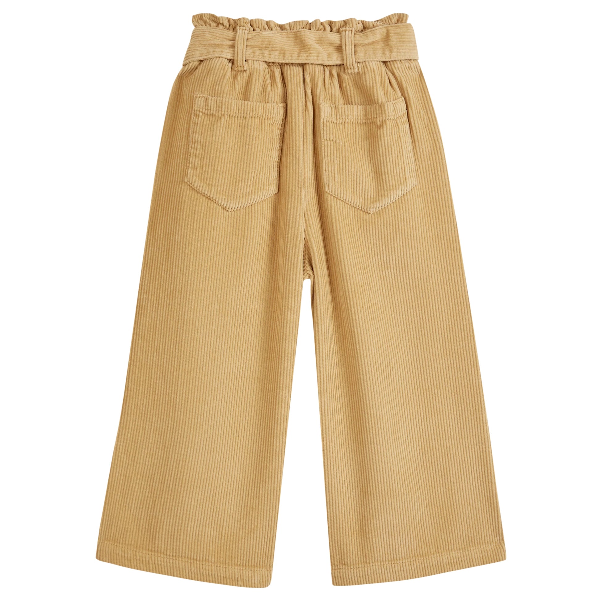 Beige cotton corduroy cropped pants. Pants made of a soft and fluffy material mounted on a wide elasticated belt. Wide cut, belt-to-tie, patch pockets, and stitched on the front Italian buttocks, so many small details decorate these cropped pants.