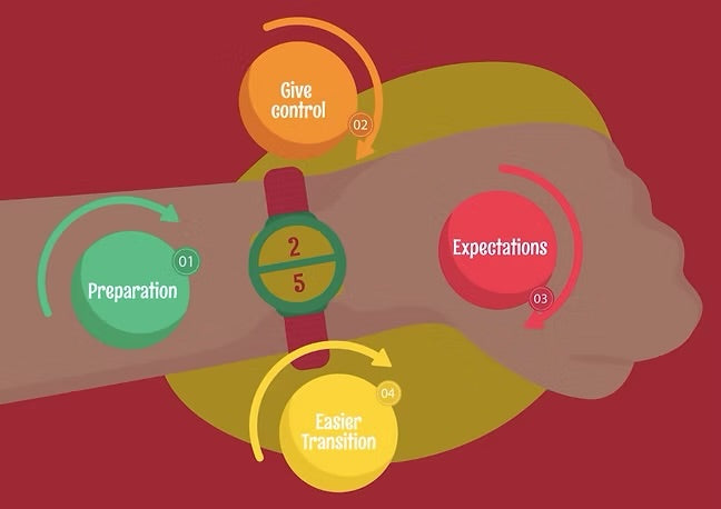 Bonus tip: use it for teeth-brushing sessions! - A 5-minute timer is used for transitions that need longer mental preparation, like leaving the playground or wrapping up a playdate.Â