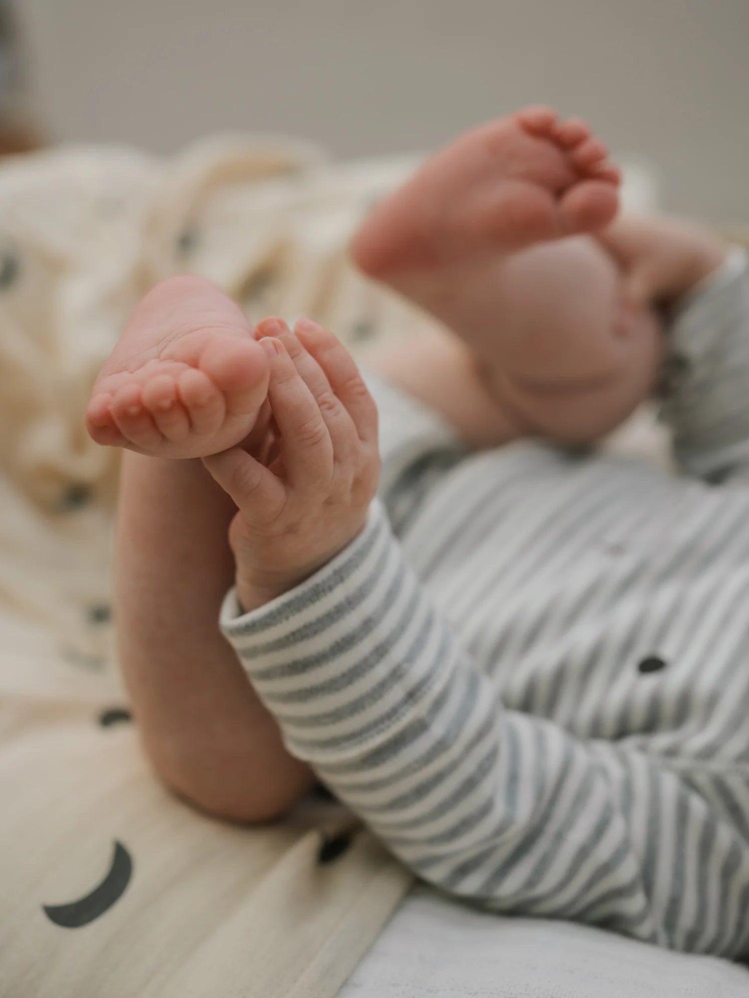 Our super soft 100% organic cotton Stripy Bunny bodysuit in a neutral grey hue is designed to be loved and handed on to other little ones year after year. This classic style features an adorable bunny face and poppers around the legs for easy dressing. It’s a non-seasonal addition to your little one’s capsule wardrobe and looks great with any of our leggings, sweatpants and tights.