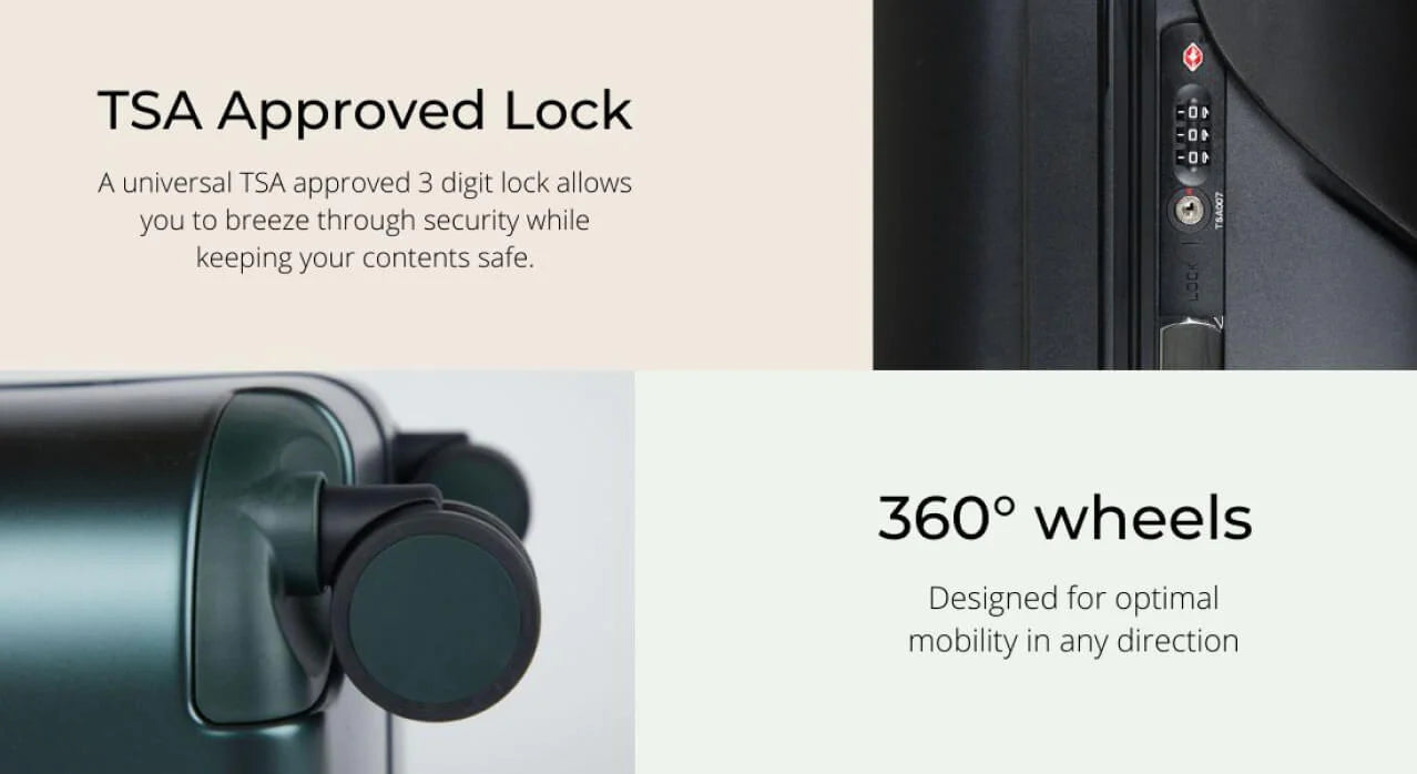 The shape of the luggage is designed with a wider base to add more stability and a smoother ride.