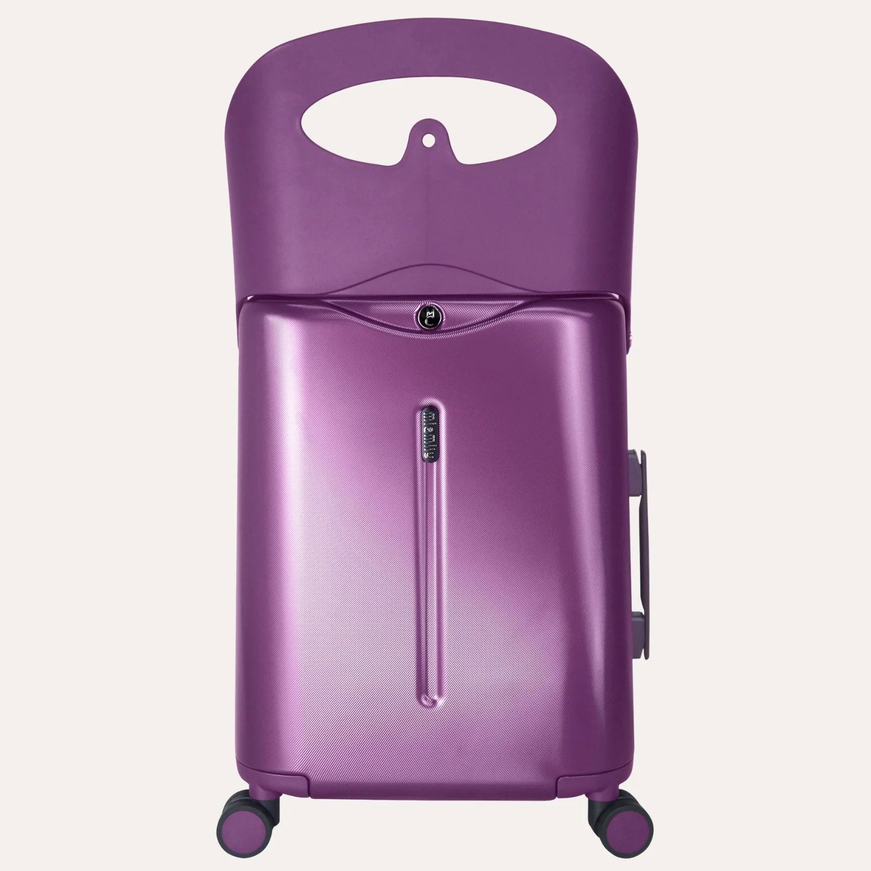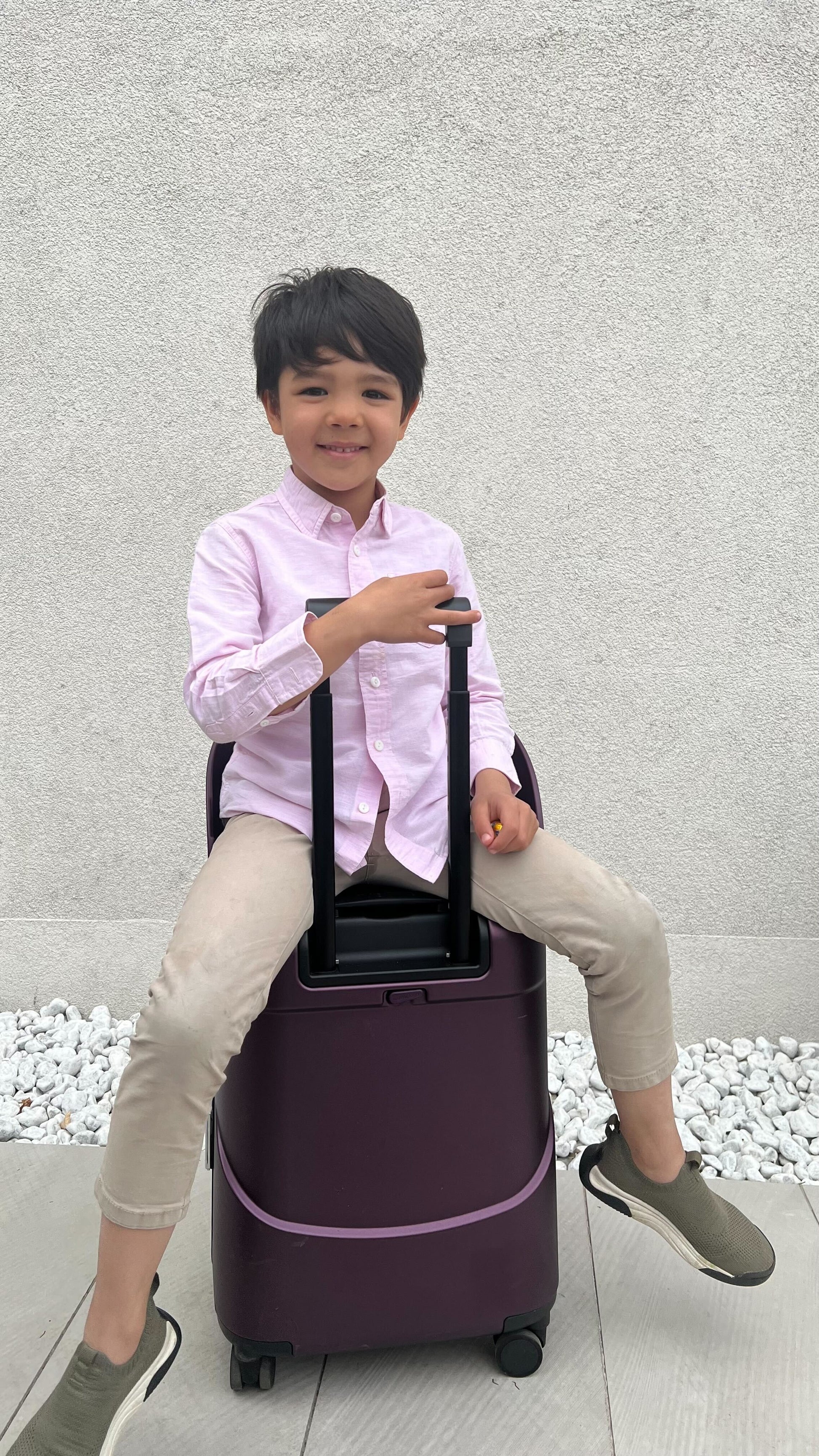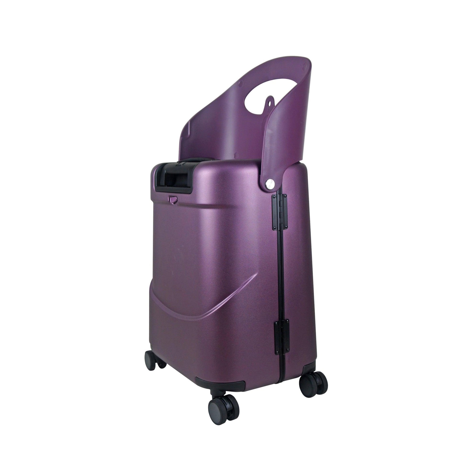 The MiaMily luggage bag is a versatile companion that transforms into a ride-on suitcase for kids or a portable seat for adults, providing convenient travel and a resting place. Without a child, it securely stores essentials like a diaper bag, travel bag, or briefcase.