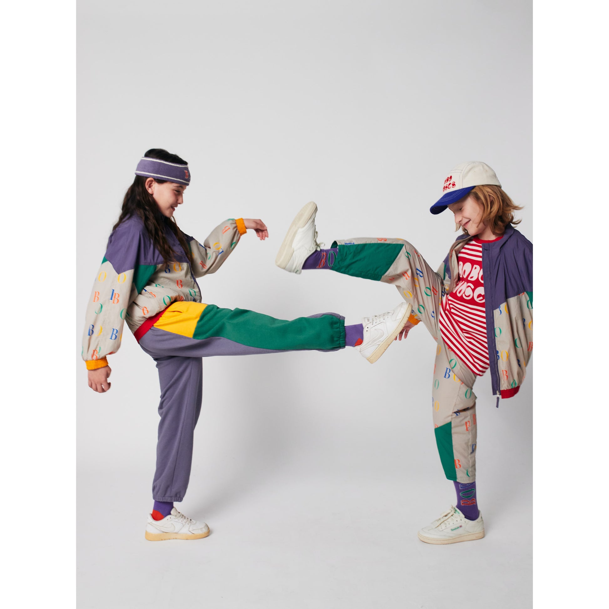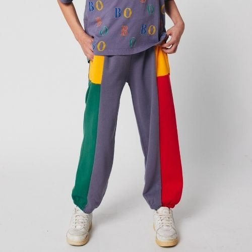 This vibrant pair of color-block joggers by Bobo Choses is crafted from 100% cotton for all-day comfort and breathability. Designed with a fun mix of yellow, green, red, and grey panels, this piece is perfect for play, sports, and everyday adventures. The elastic waistband and cuffs make these joggers easy to wear, while the high-quality construction ensures lasting durability.