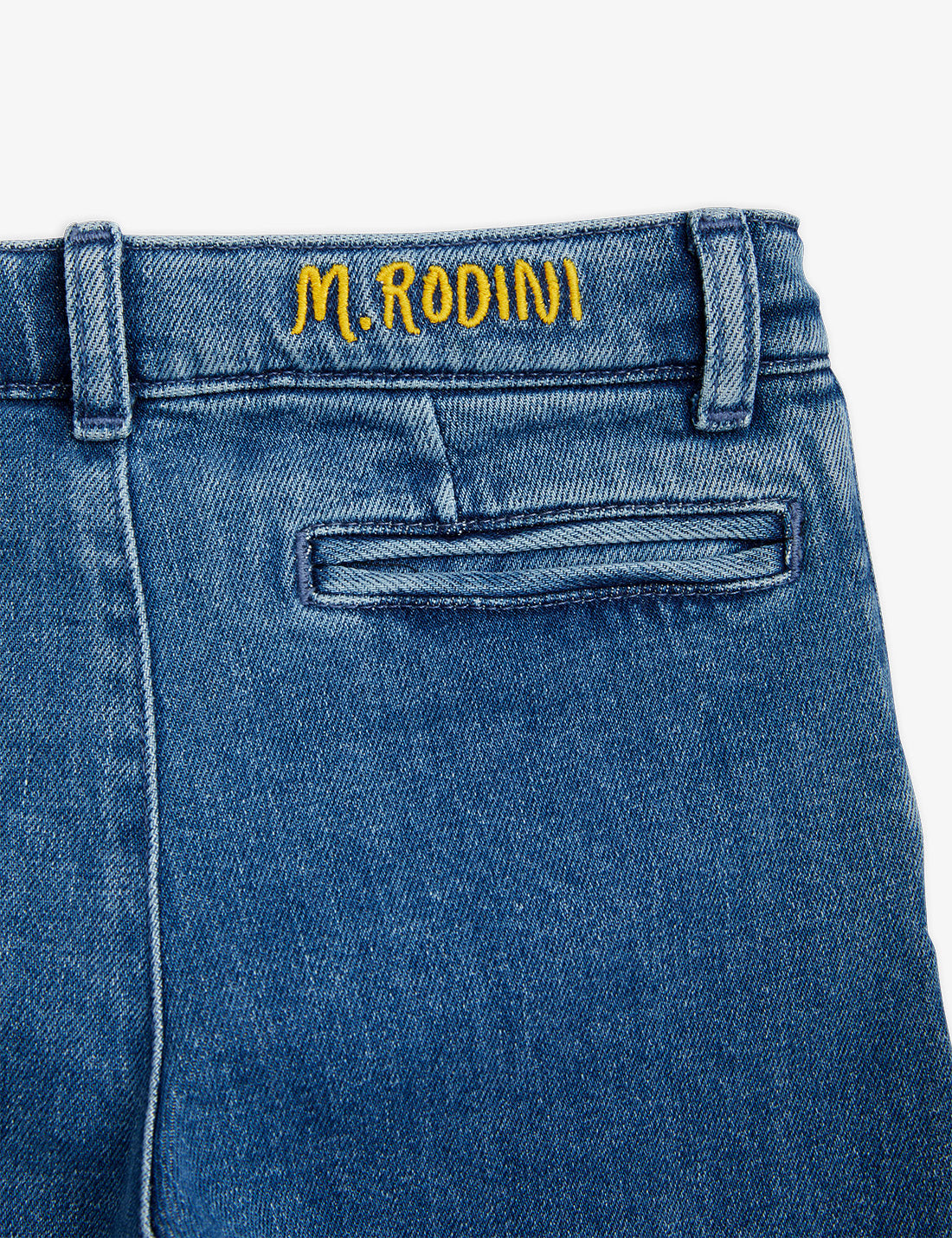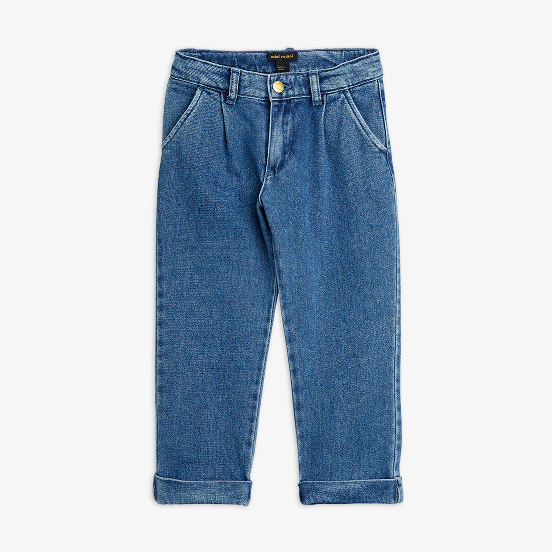 Ozon washed denim chinos made from GOTS-certified organic cotton and a hint of stretch. Designed with fold up cuffs, adjustable elastic waistband, branded golden button as well as front pockets and a back pocket.