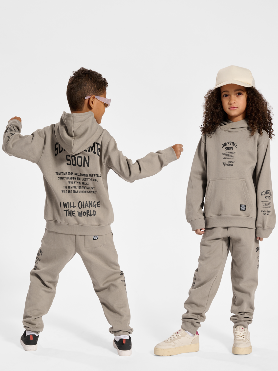 Comfortable and versatile sweat pants for engaged kids, the stsDIMAS PANTS feature sweat fabric that helps to keep them cool and dry throughout the day. A brushed backside offers some additional comfort. Featuring side pockets and a drawstring inside the waist for adjustability, these pants also have the Sometime Soon print on both sides for a sleek design. Made with soft cotton fabric, they also boast the STANDARD 100 by OEKO-TEX® label, so parents can be assured they are chemical free and safe to wear.