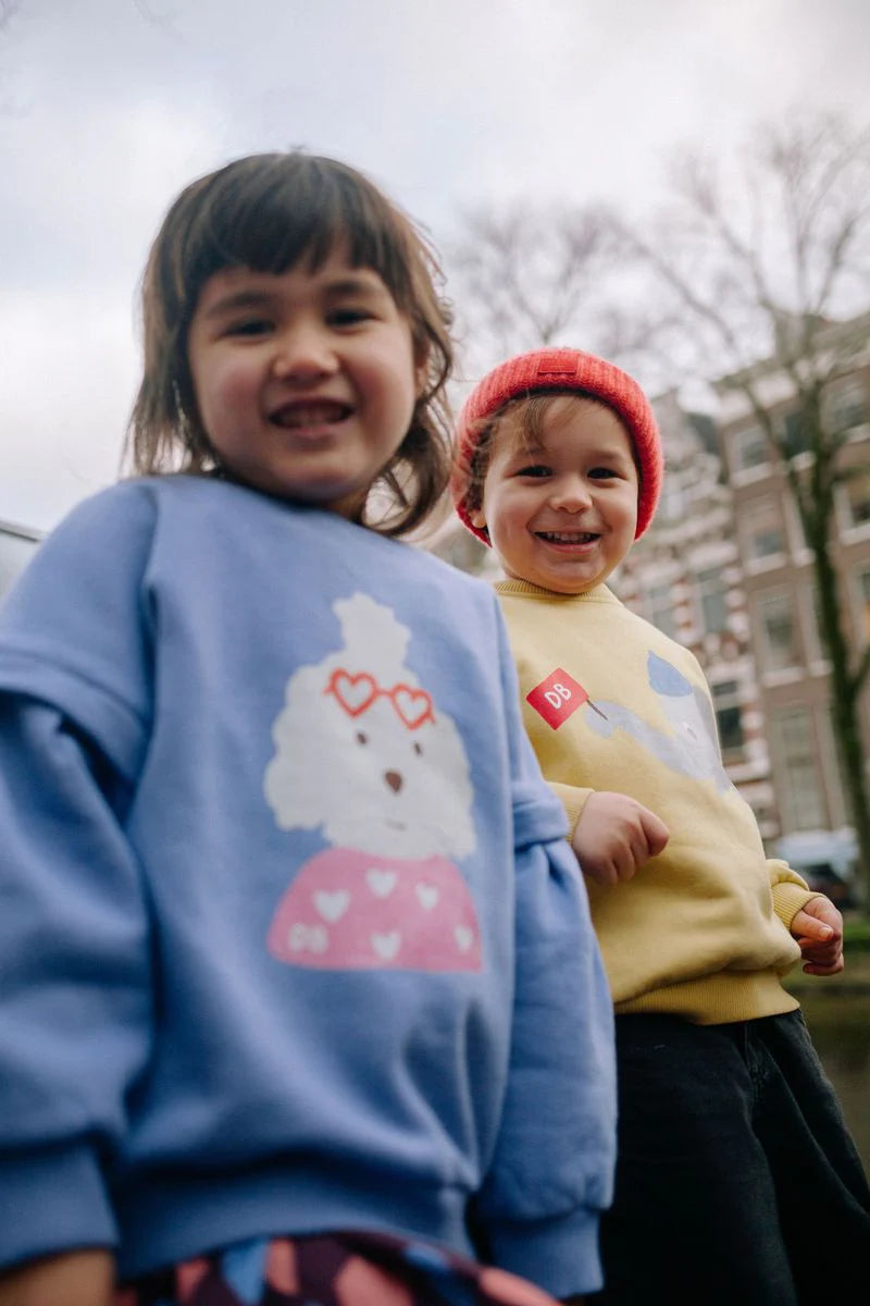 The Elephunk sweater is a sunny wardrobe favourite. In a cheerful yellow hue, it features a playful elephant with a cosy blue beanie for extra charm. The relaxed fit and soft fabric make it perfect for all-day adventures.