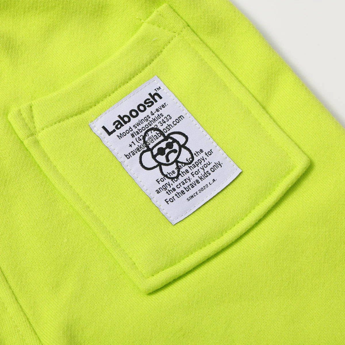 - Everyday joggers, super soft fabric, vibrant colors, loose fit, suede Laboosh print at the front and outside label at the back, drawcord at waistband for an adjustable fit, rib cuffs at the bottom