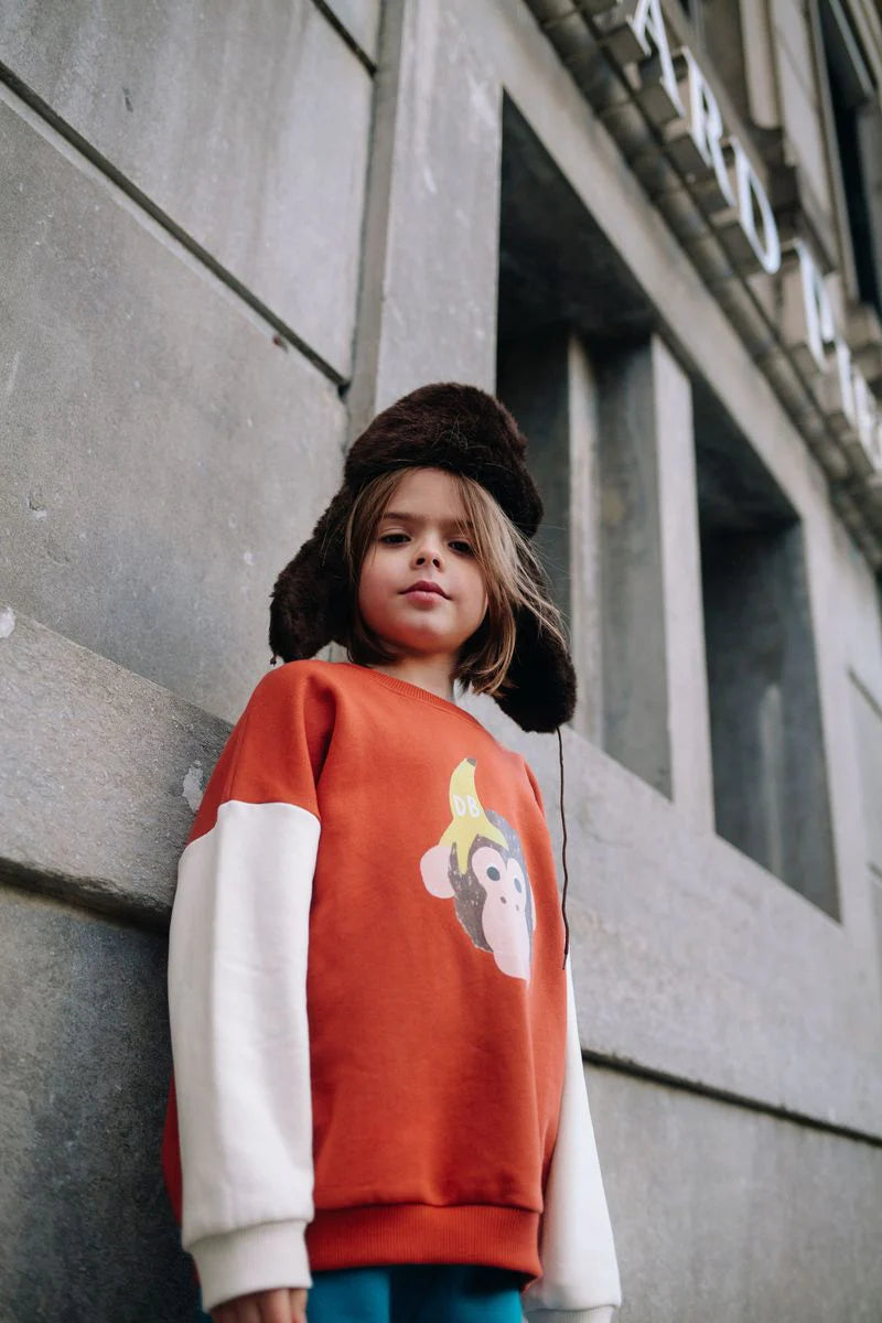 The Funky Kong sweater bursts with playful energy. In a vibrant red shade, it features a cheeky monkey holding a banana. Designed in a relaxed fit with contrasting sleeves, it’s perfect for adding personality to everyday adventures.