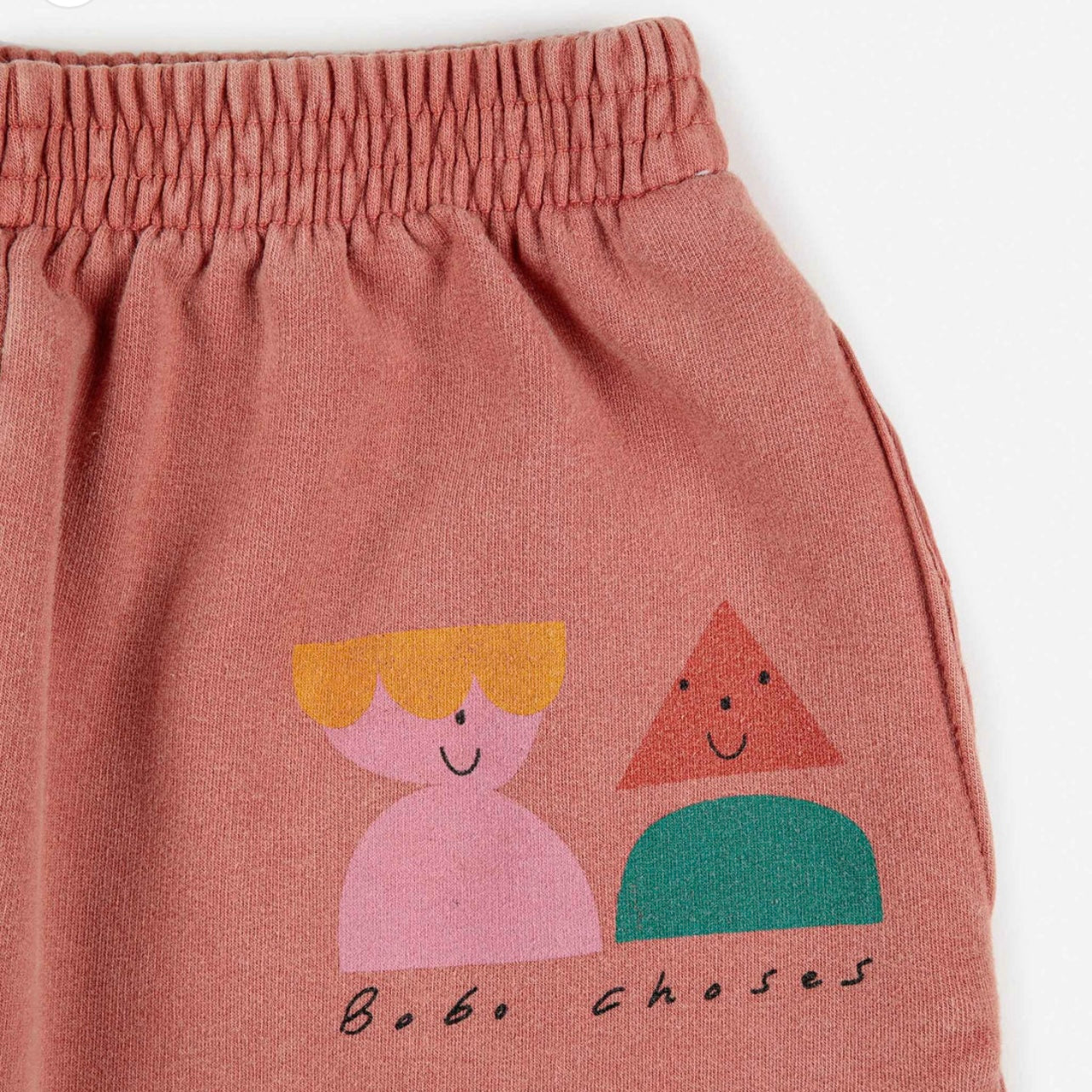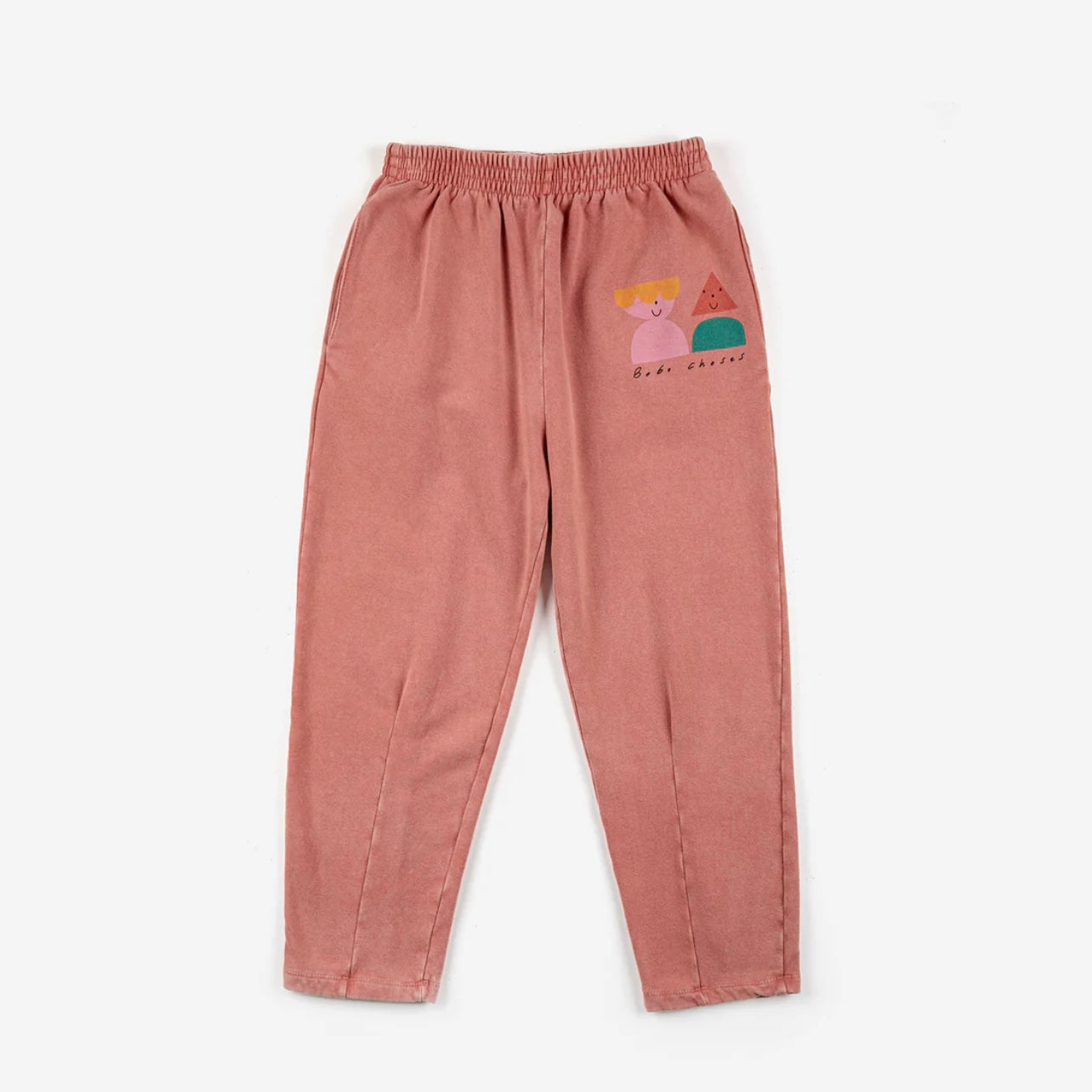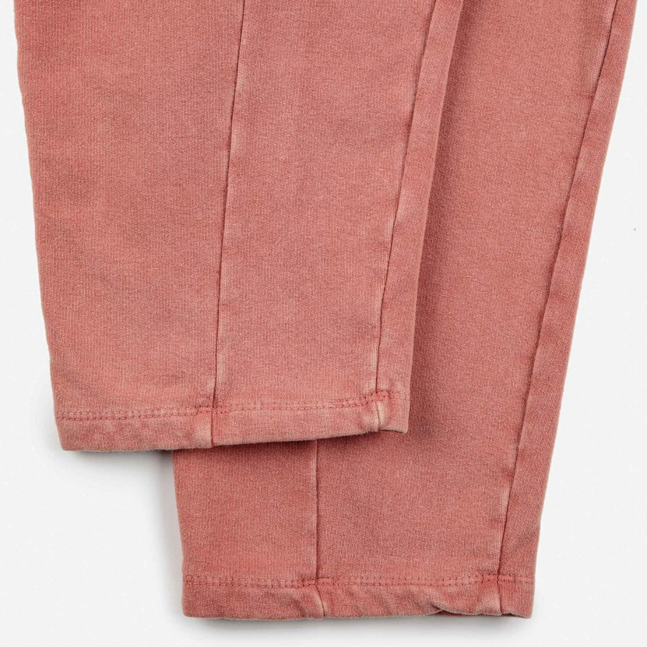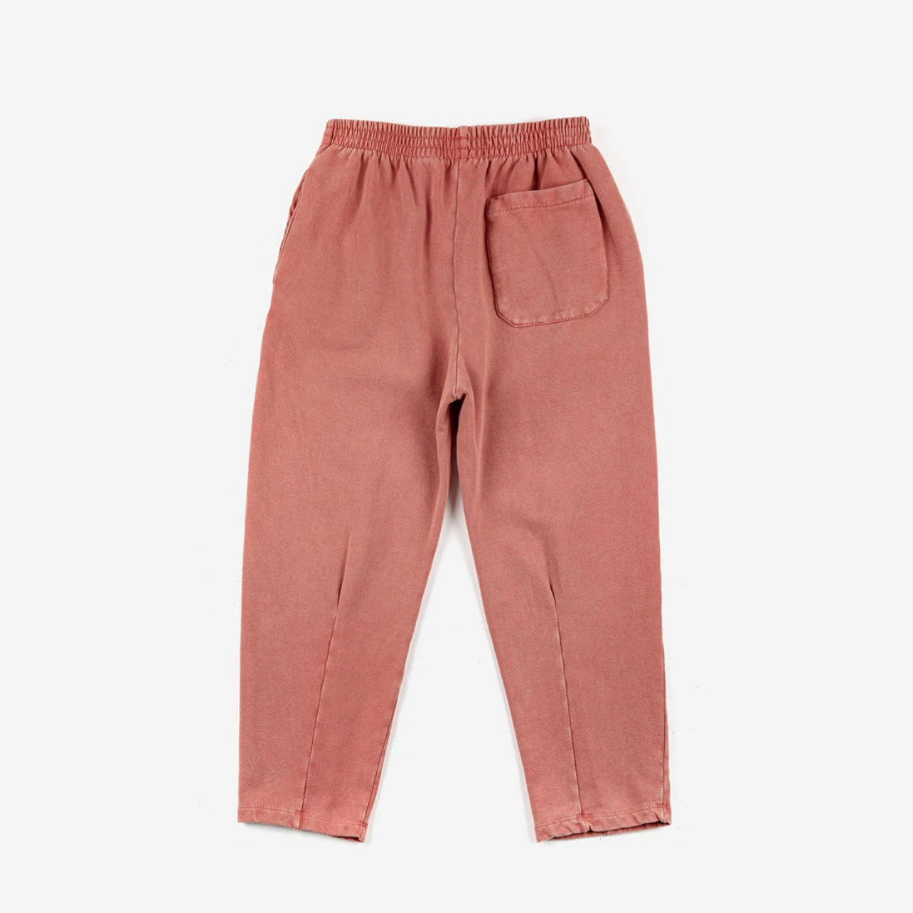 94% organic cotton 6% elastane salmon pink jogging pants. Designed with elasticated waistband, side pocket, ankle length and inner brush fleece. It has a cocoon fit. Made in Spain.