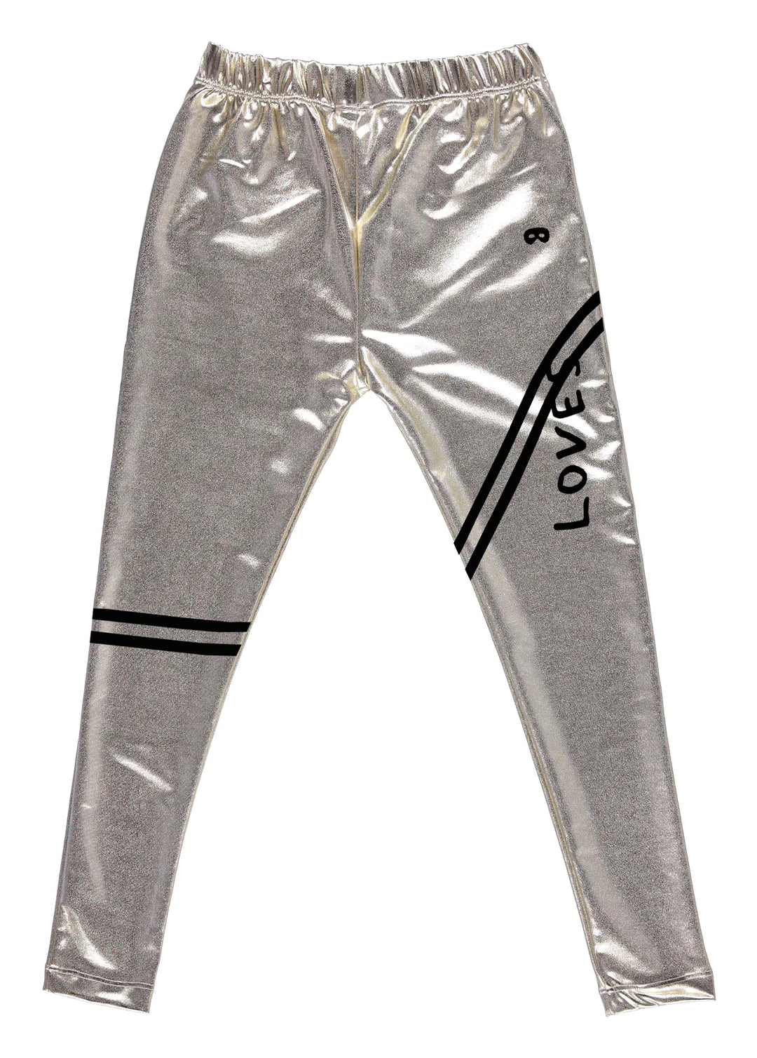 Make a real statement in these gold leggings, with 'LOVES' written down one leg and a wiggle wave winding its way across both legs. They feature our signature embroidered superhero mask below the waistband as well as an easy elasticated waist.