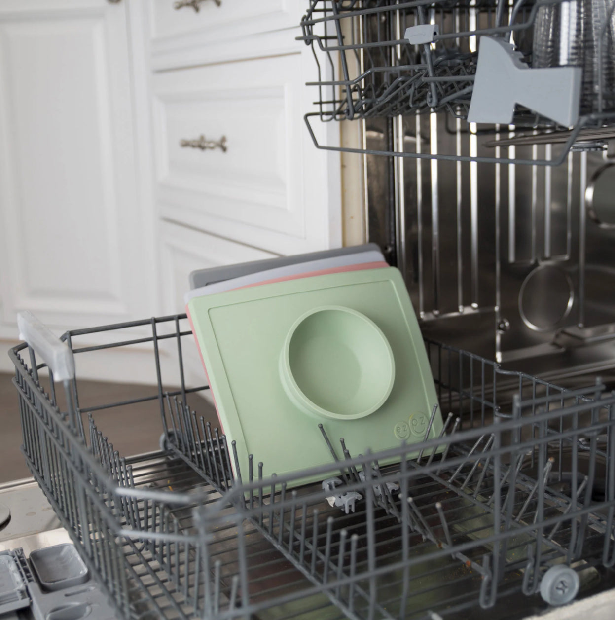 The ezpz Happy Bowl is an all-in-one placemat + bowl that suctions to the table, which means that it captures the mess and reduces tipped bowls and plates. The Happy Bowl helps toddlers and preschoolers eat soup, pasta, oatmeal and cereal.