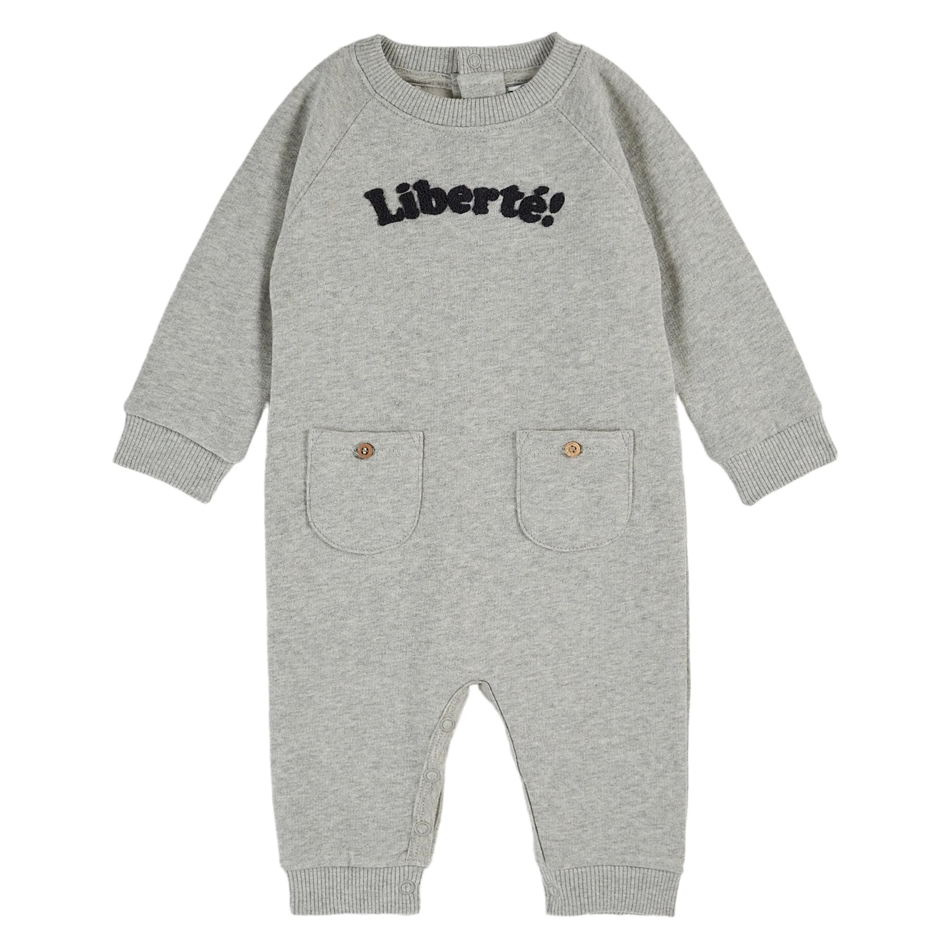 Jumpsuit in merino wool, synthetic fibers and unbleached cashmere. A color that doesn't stick to teeth or fingers, but matches the colors of autumn. A baby jumpsuit knitted with high-quality wools that don't sting, are very soft, fine and silky. The quality of the materials used enhances the jersey-stitch-knit design. Raglan armholes, a full-height wooden button and two long sleeves embroidered on the cuffs with a black kitten snout. Ribs tighten cuffs and ankles. Around the neckline, the ribbing is double-layered. A haven of softness for babies and those who wear them.