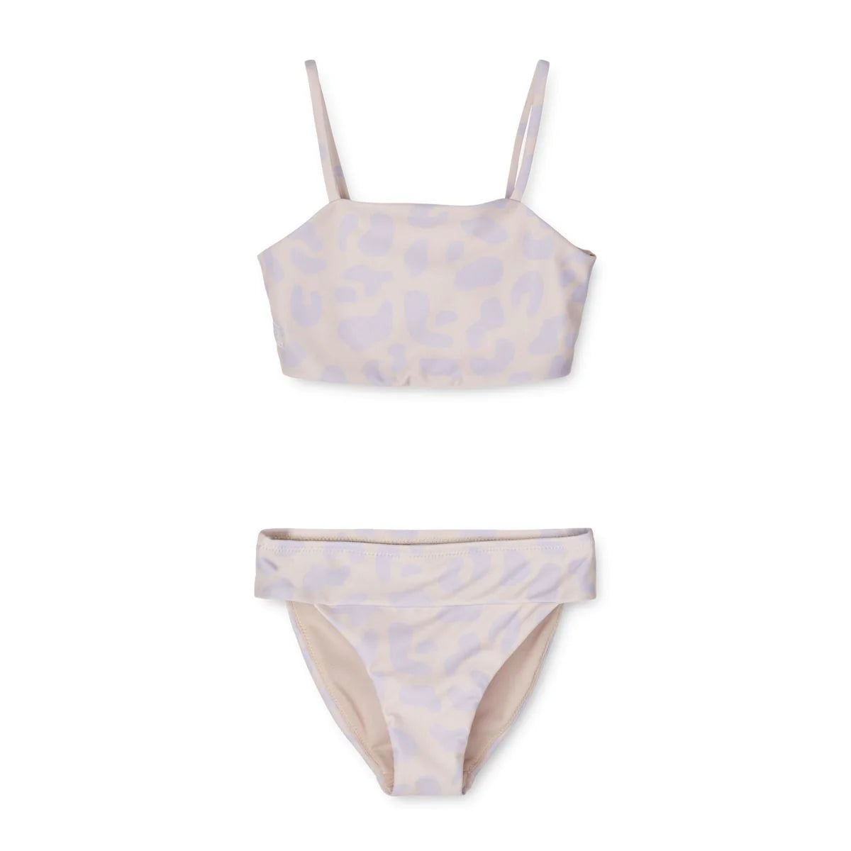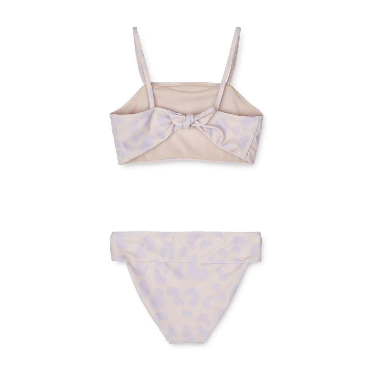 A sporty yet detailed children's bikini made from sun-safe, recycled polyester. The easy-drying, stretchy fabric makes is comfortable and a playful knot-closure detail in the back along with creative prints to chose from adds the extra personality.