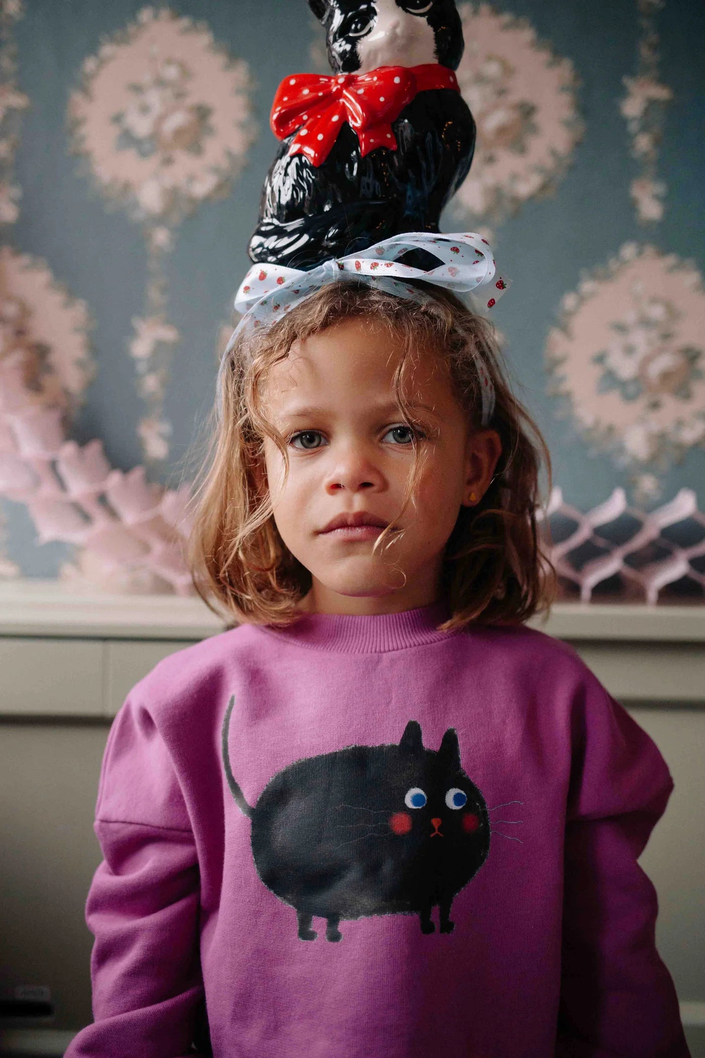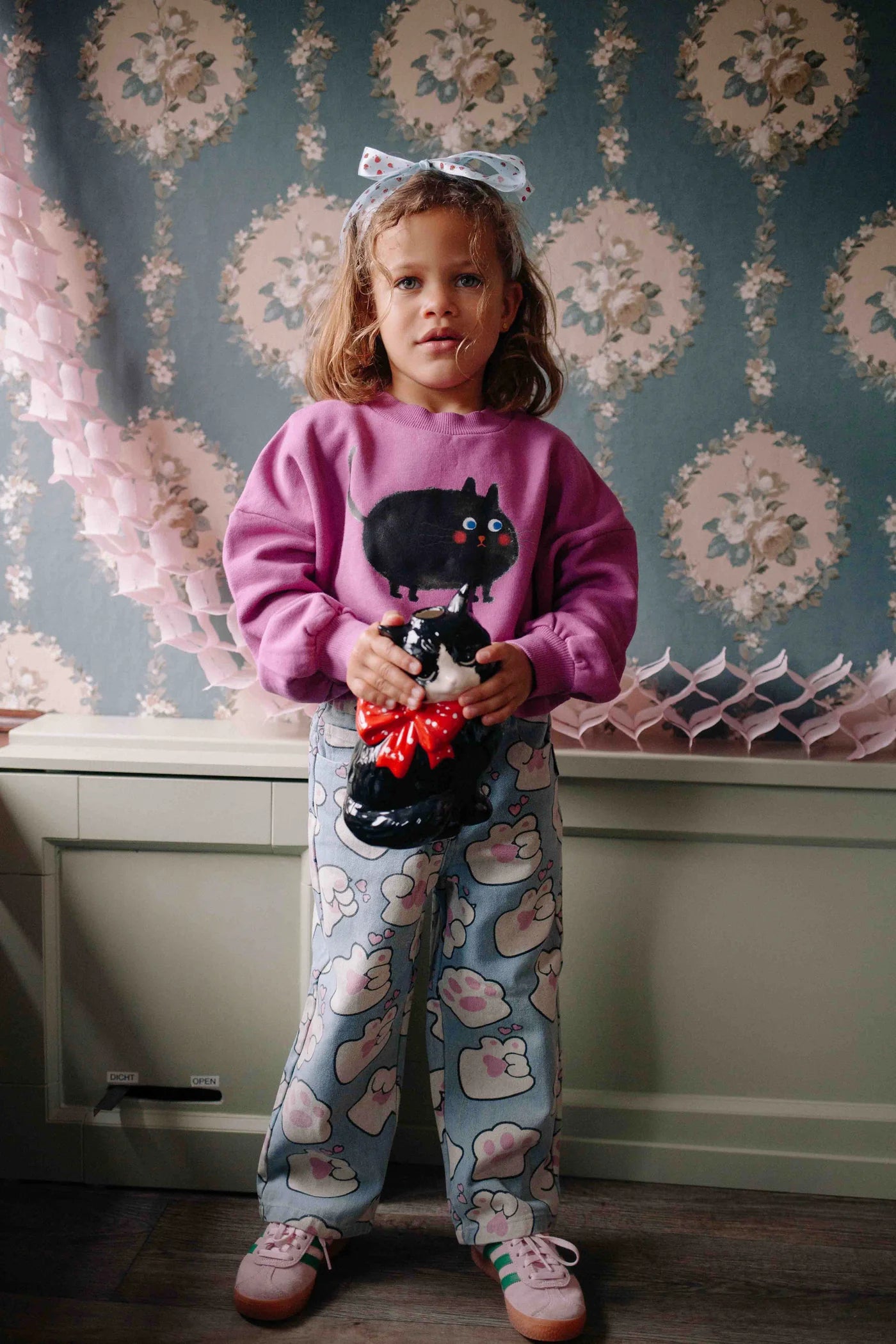 This cosy piece showcases our hand-drawn kitty illustration. Designed with relaxed dropped shoulders, ribbed trims, and a soft brushed inside for extra comfort.
