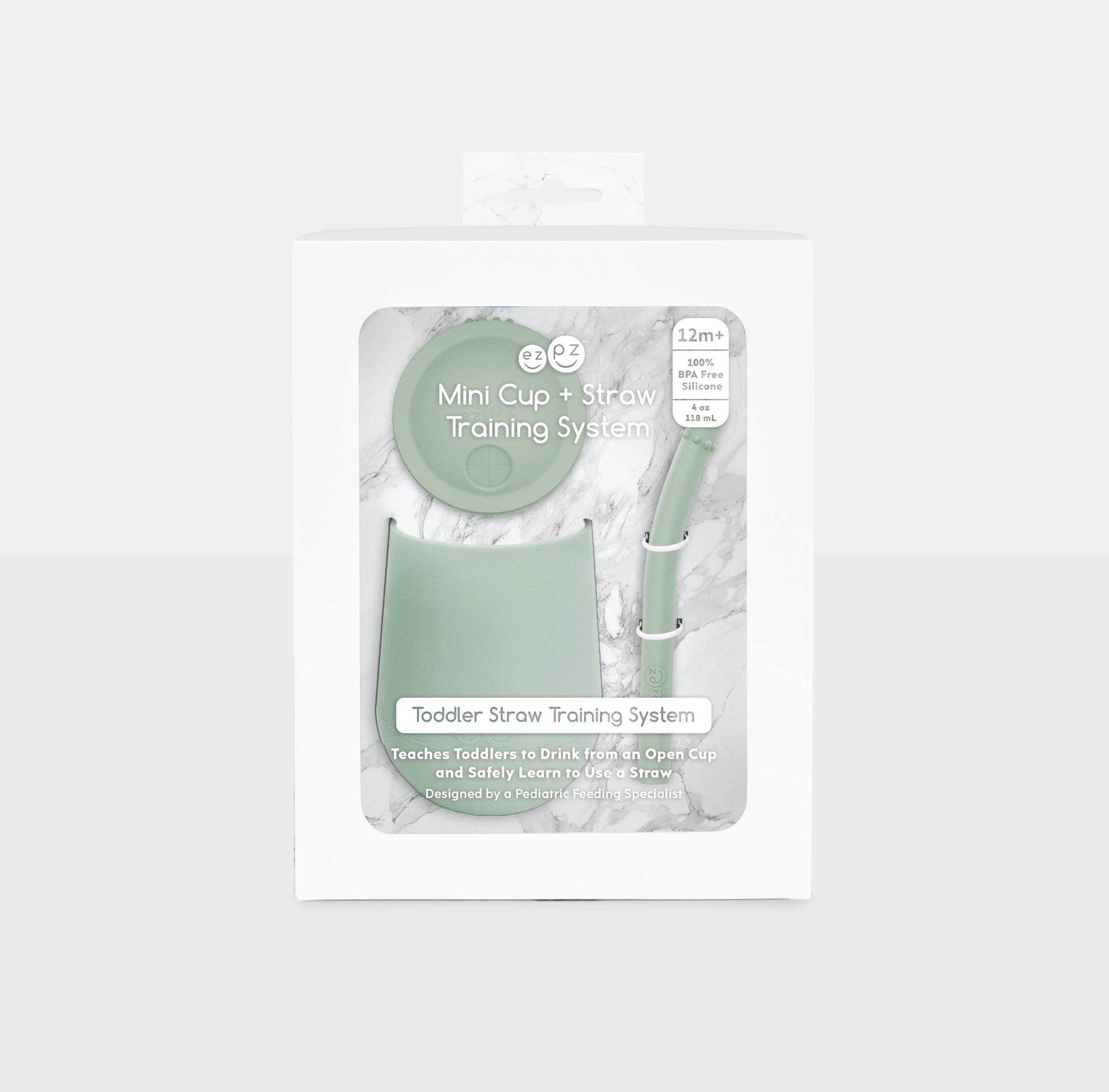 Learning to drink from a straw is an important developmental milestone that develops lip rounding and promotes speech development. The ezpz Mini Cup + Straw Training System teaches toddlers to drink from an open cup & safely learn to use a straw.