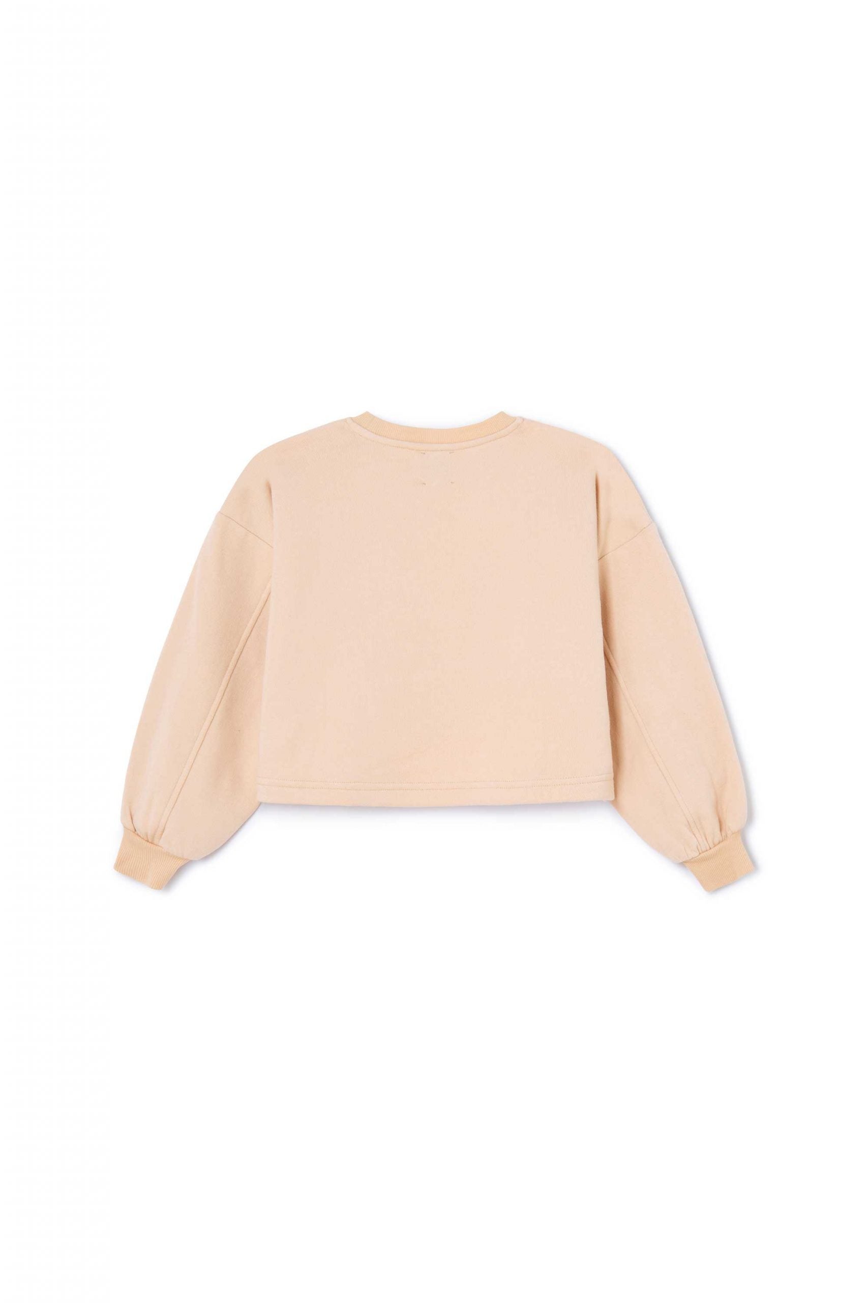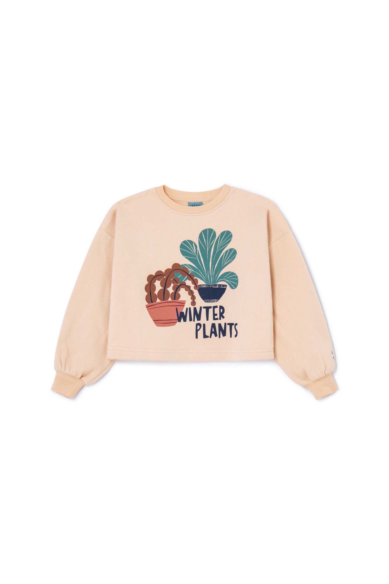 100 % organic cotton texture fleece sweat in nude color. Round neck, long and ribbed sleeves. Elastic cuffs and waistline. Front “winter plants” print. Slightly oversized.
