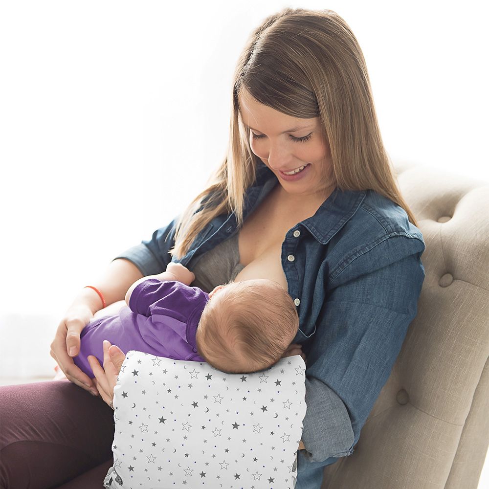 - Helps with comfortable positioning, latch, and feeding