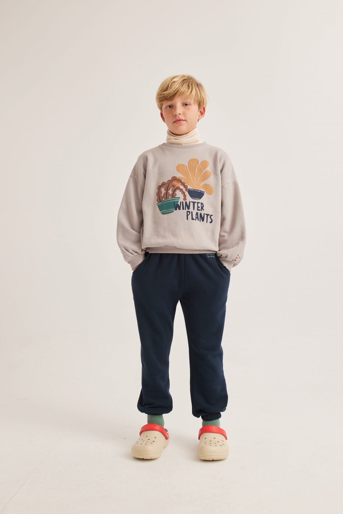 100 % organic cotton texture fleece joggers in moss color. Elastic waistband with adjustable cord waistband and ribbed cuffs. All-over ”our imaginary friend” print. Overall oversized fit.