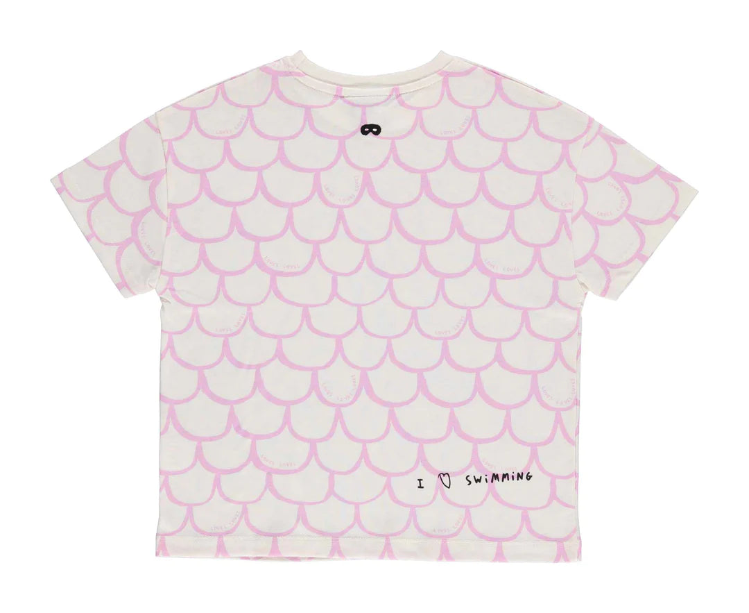 With our cute Scales print on a natural coloured background, this t-shirt is designed in a classic relaxed fit and features a ribbed collar and short sleeves. Our signature embroidered superhero mask is at the nape of the neck.