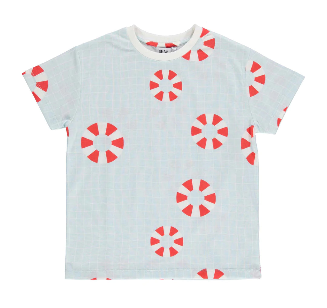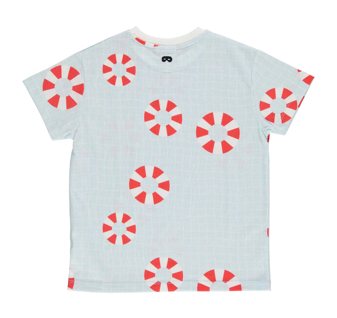 Our vibrant Pool print covers this clear blue coloured t-shirt. Designed in a classic fit, it features a ribbed collar and short sleeves. Our signature embroidered superhero mask is at the nape of the neck.