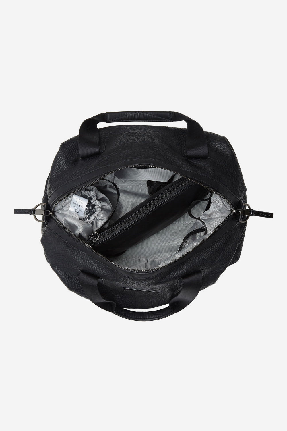 A sleek and compact every-day version of our best selling ‘RAF’ WEEKENDER. Smaller but perfectly formed and includes all original internal functionality. This hard-working holdall gets a sports-lux make-over with a feminine edge, crafted in soft grey tumble vegan leather and set back to sleek gold hardware. The perfect size to fit all your essential items for a day out, it also doubles up as a stylish work bag, hand bag or overnight bag.