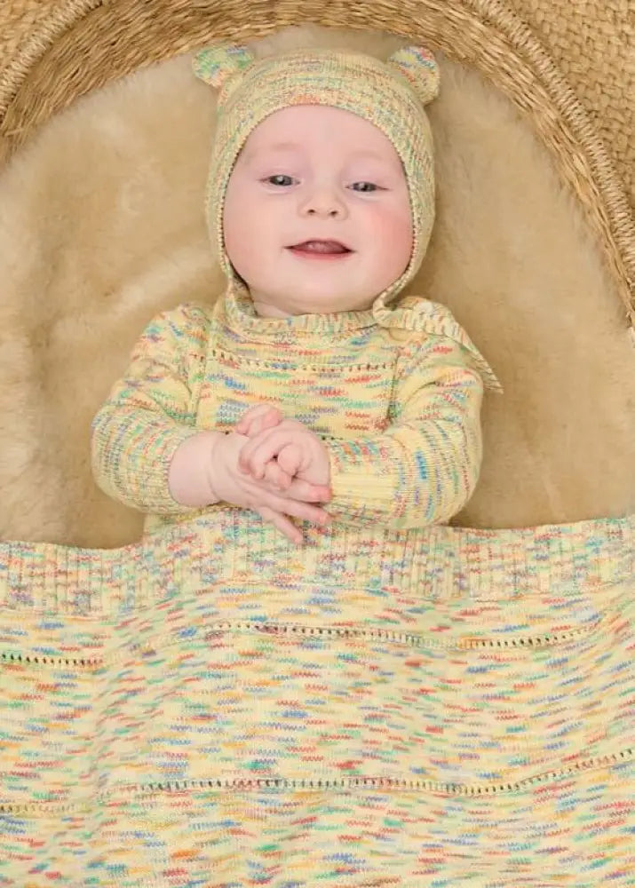 100% Organic Cotton for super softness against your little ones' skin. Knitted using traditional Fully fashioned 12 Gauge knit machines, which give a beautiful finish, the knit is thick and warm as it has several layers of knit within the jaquard. Fully Fashioned knits ensure there is less wastage in production.