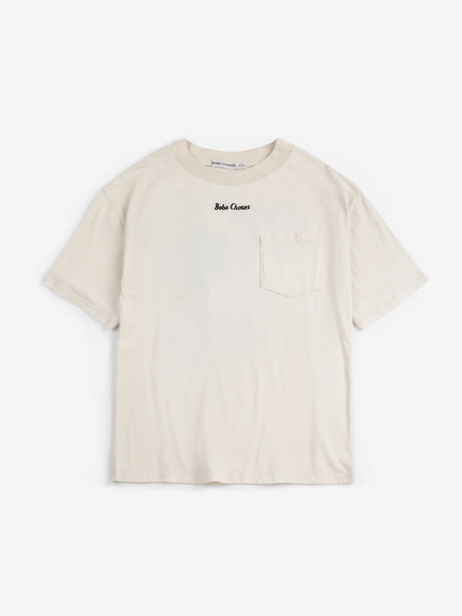 Offwhite t-shirt. Designed with short sleeves, patched chest pocket, embroidery, loose fit and round neck. Made in Spain.