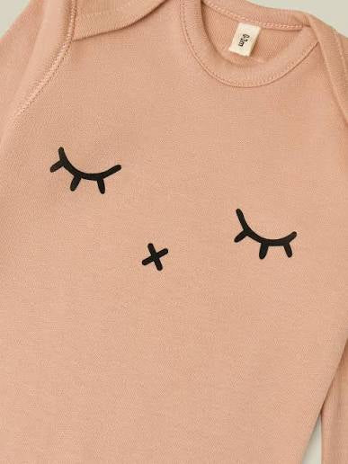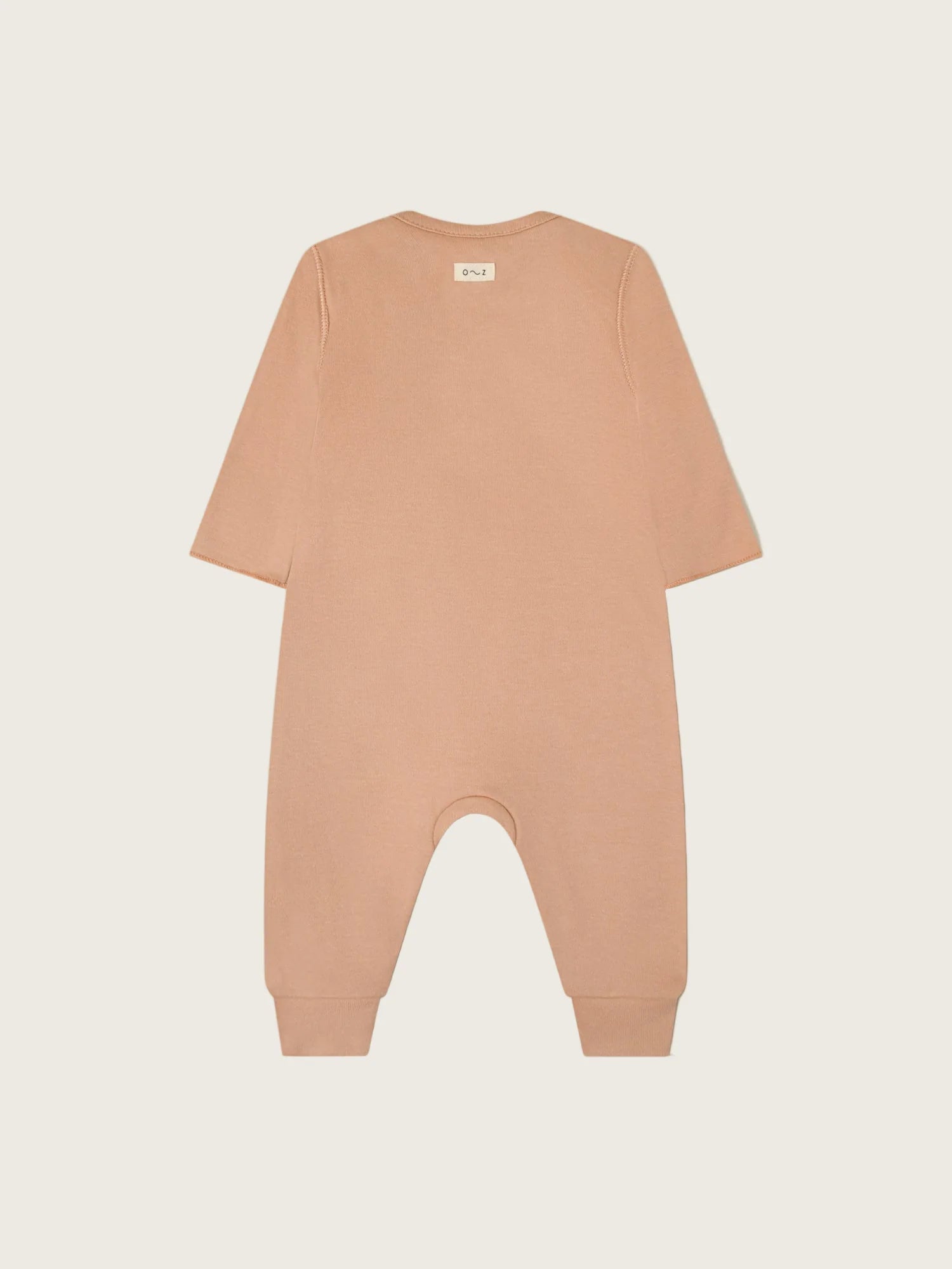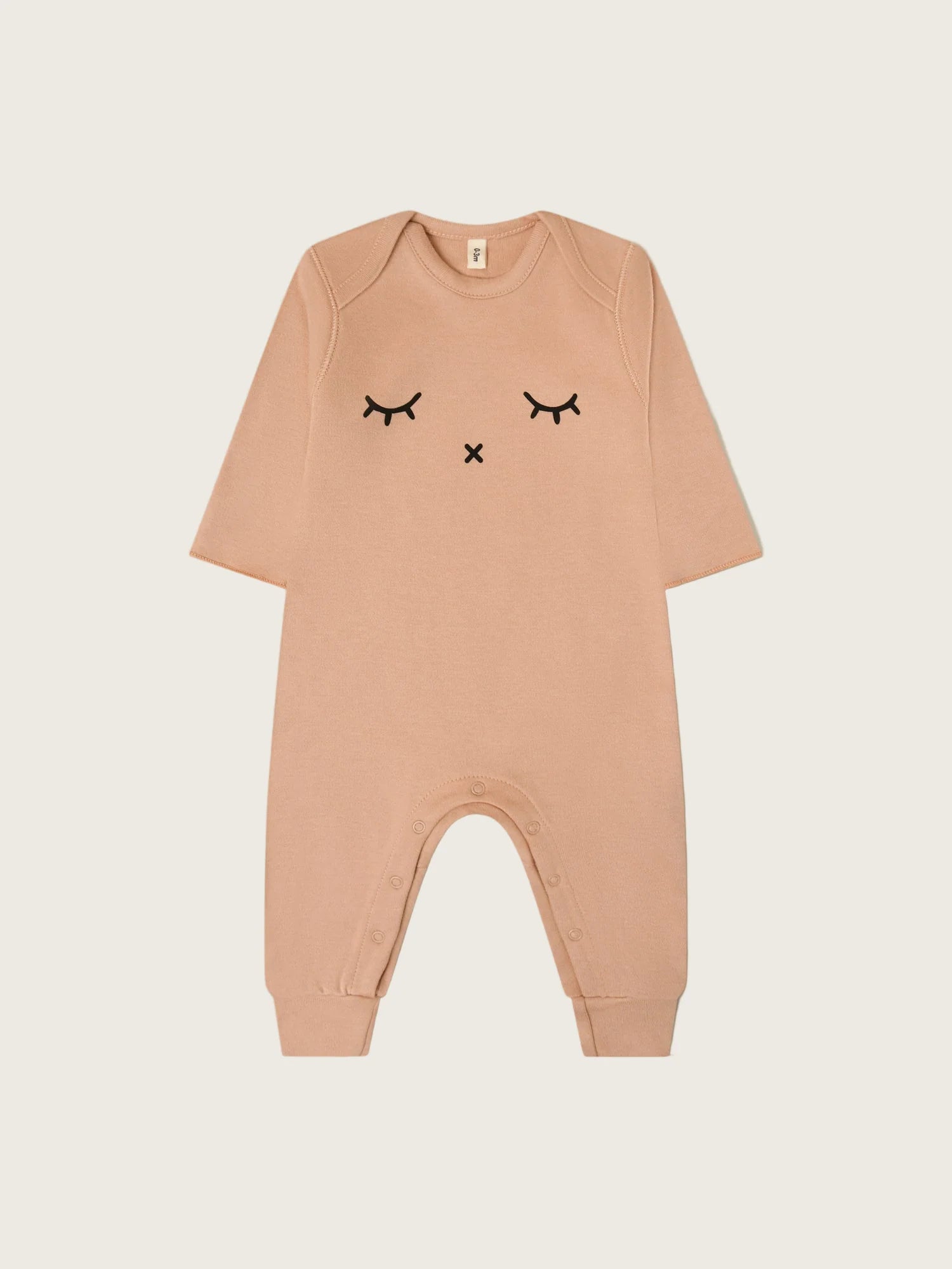 Our original Bunny playsuit will keep your little one warm for outdoor adventures and comfy for indoor play dates. In a neutral peachy hue, this style features an adorable bunny face, envelope neck and poppers around legs for easy dressing and nappy changing.