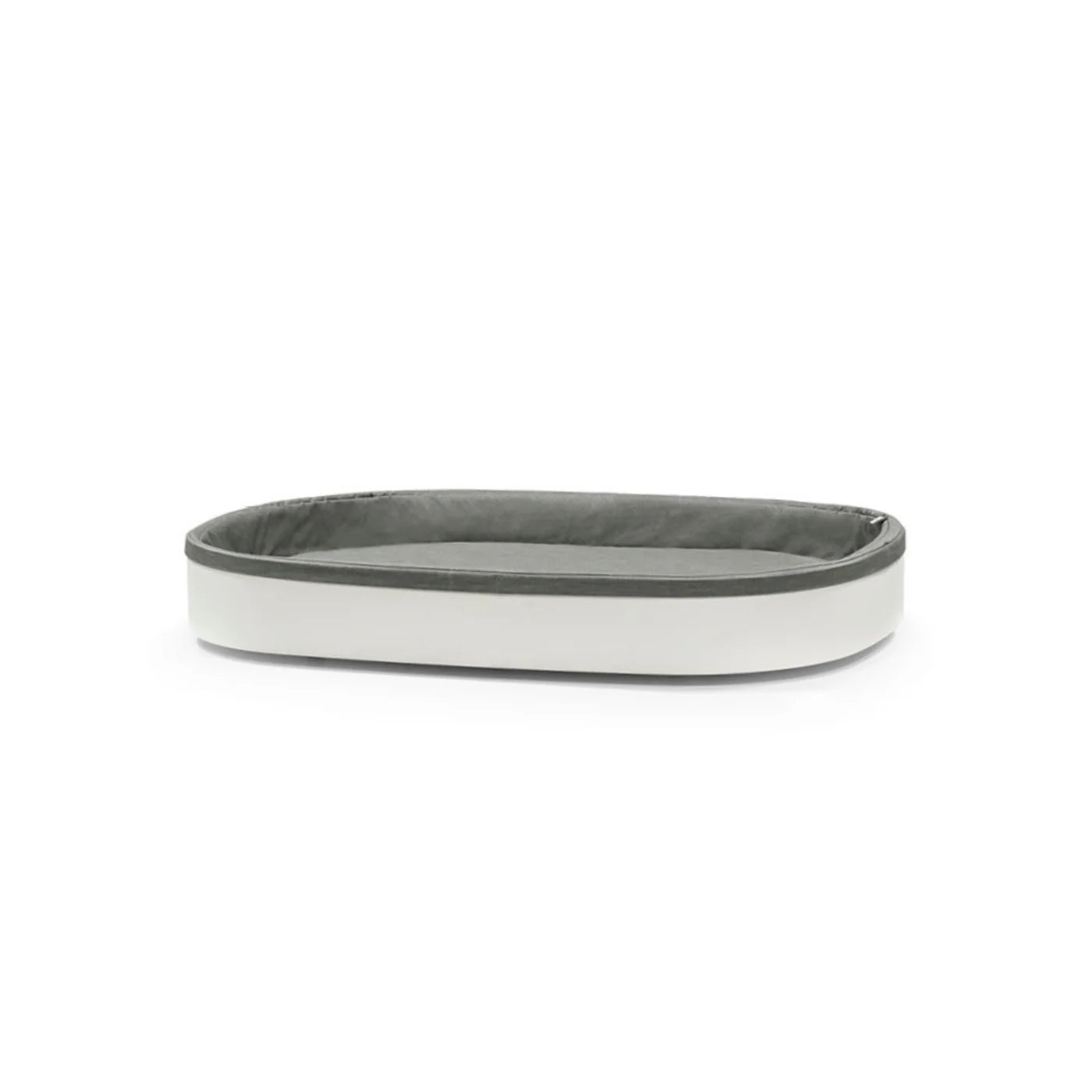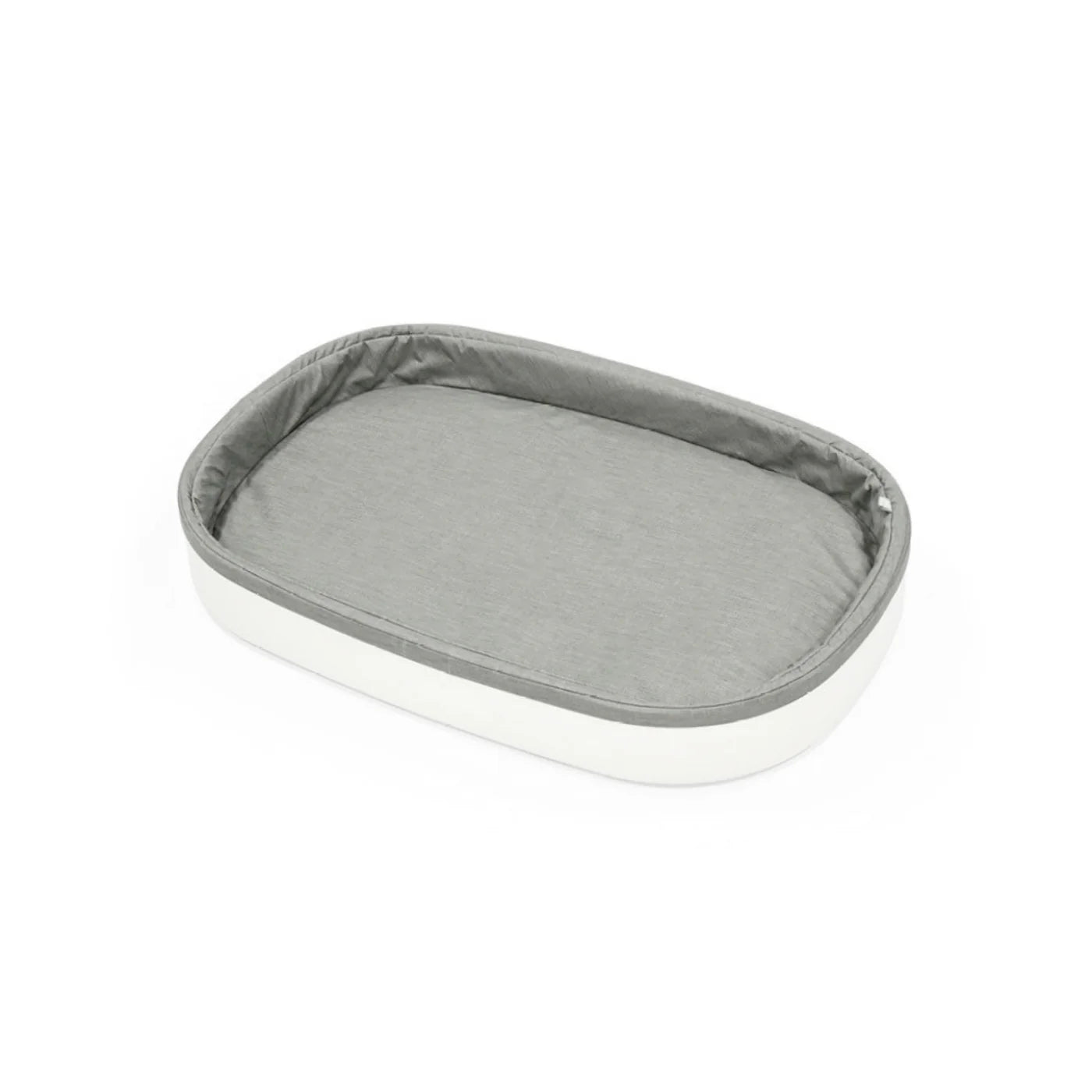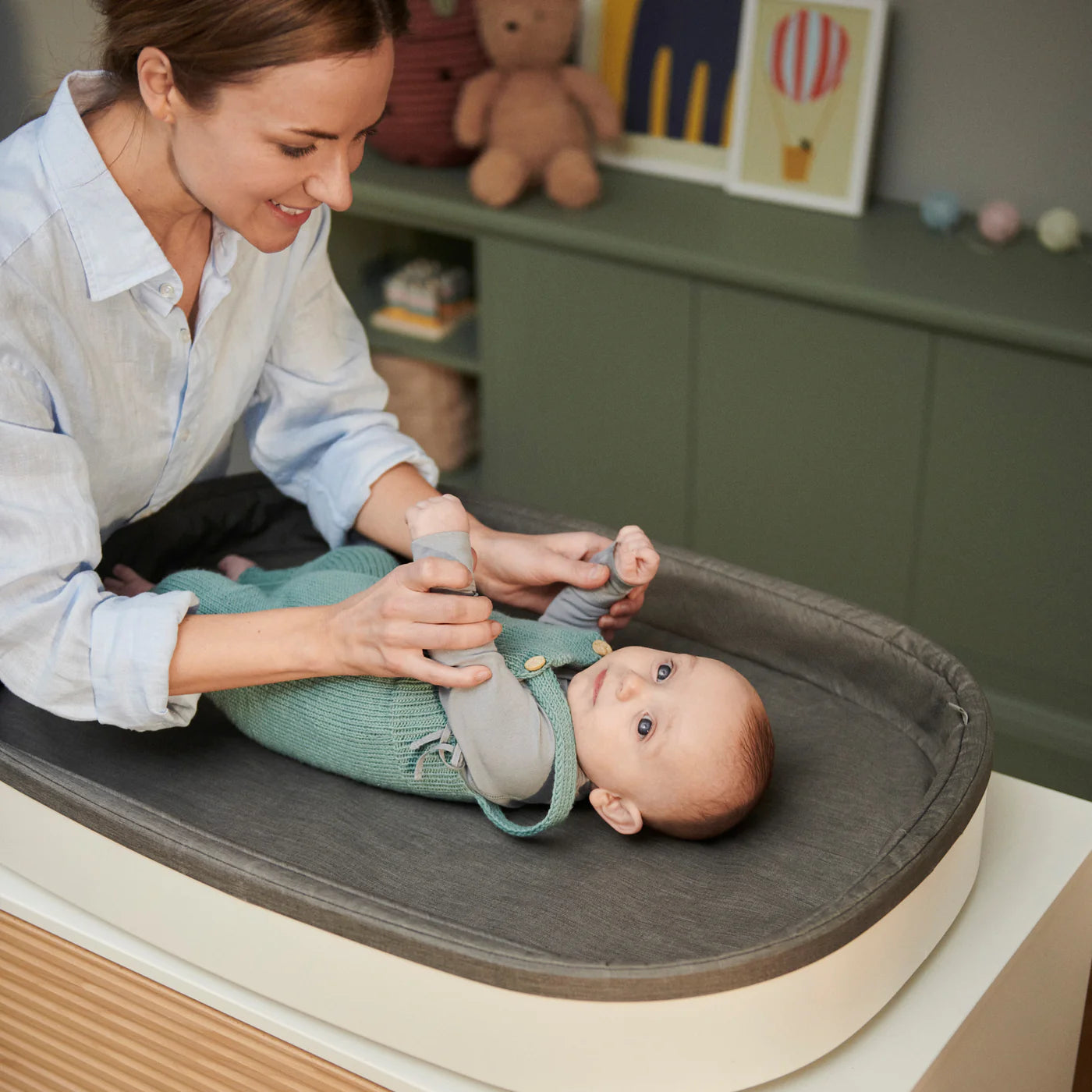 The changer can be safely used on top of the Stokke® Sleepi™ Dresser. Its protective sides and padded mattress offer a safe and comfortable environment for you to change your little one. The height of the Changer encourages eye-contact, and you can choose both sideway or parent facing position depending on the base unit and room. It comes with a water repellent changing pad with protective sides for baby. This changing pad is soft to baby’s skin, removable and machine-washable.