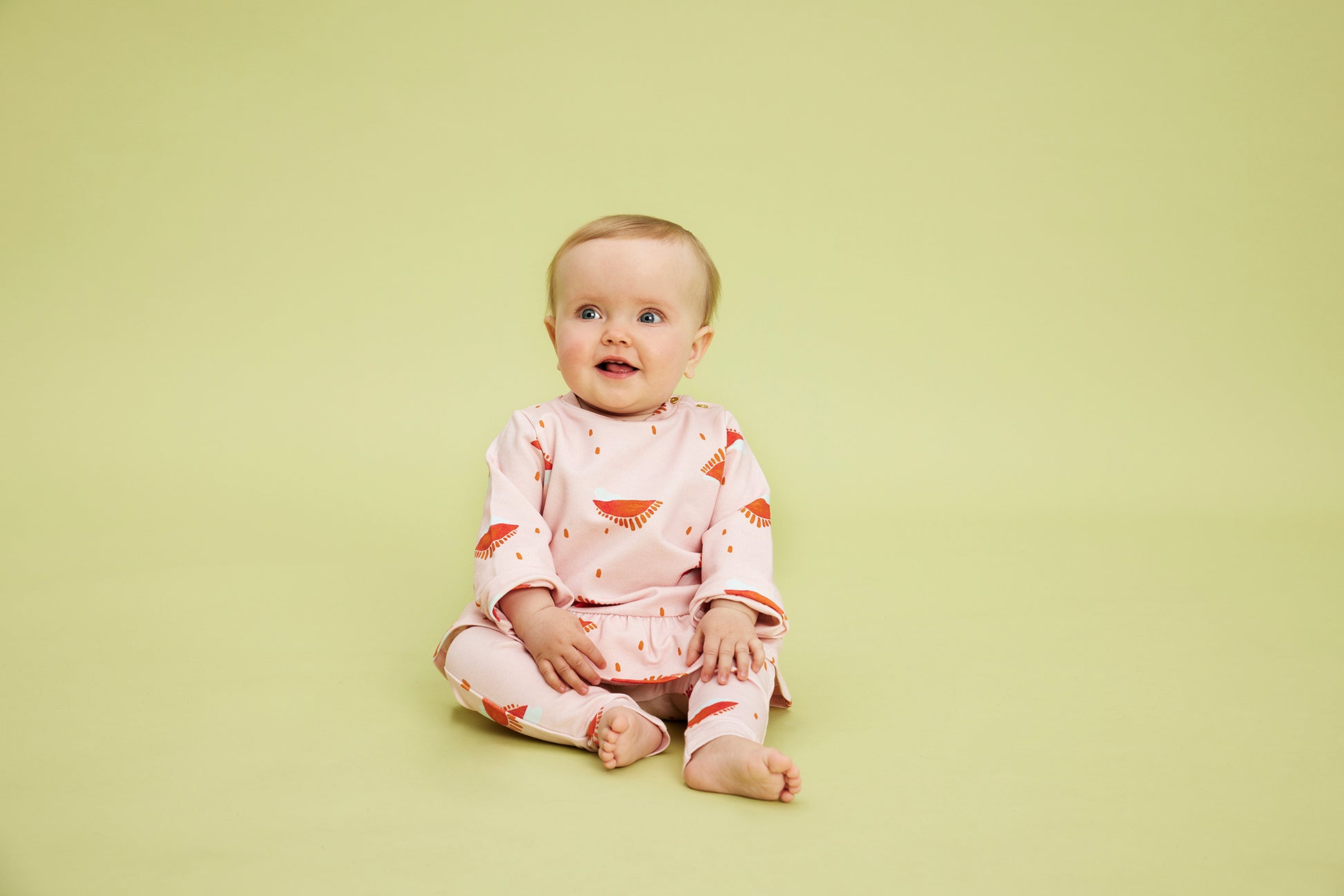 Organic cotton bottoms with stretch, which provides a nice comfort. Complete the look with the matching Sun Sweasthirt for a nice, artistic two-piece set.