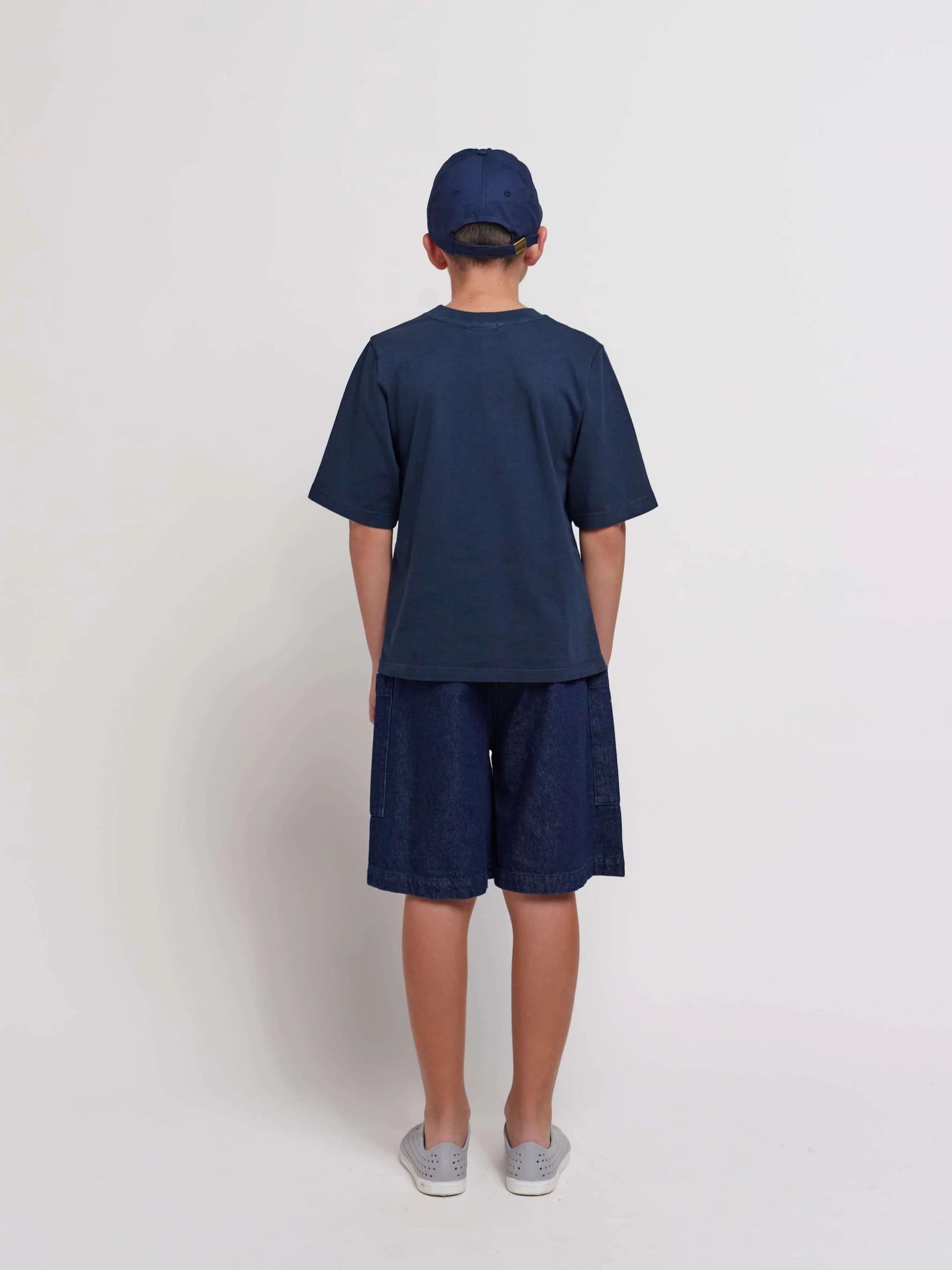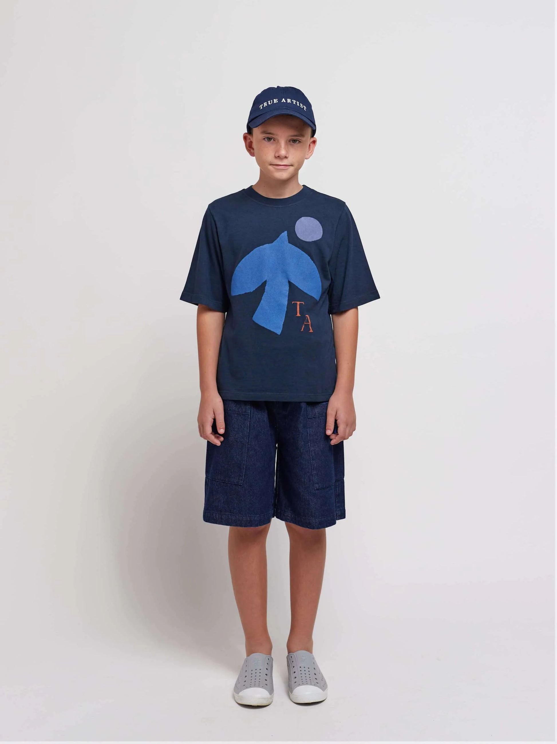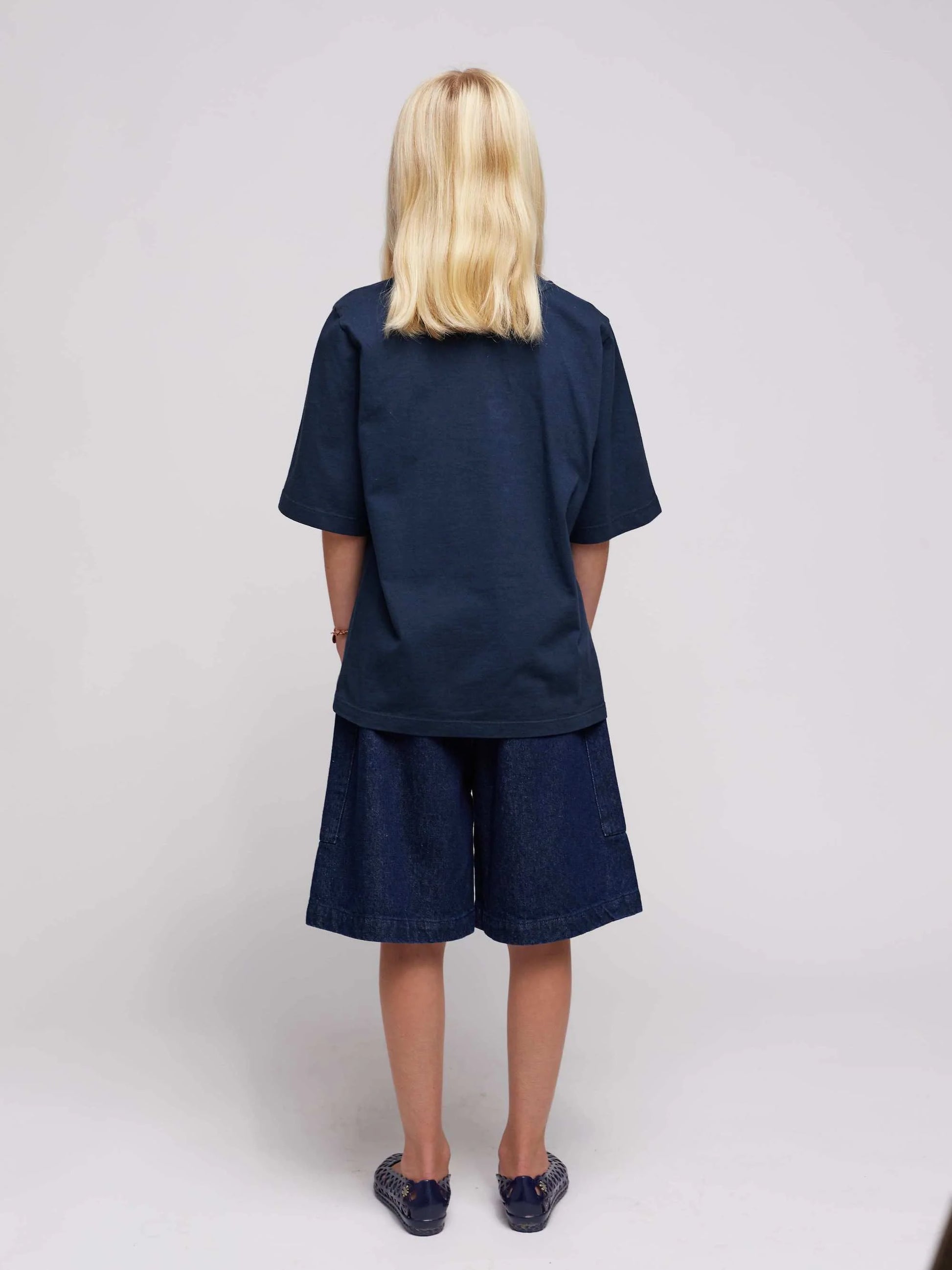 T-shirt nº05 in Navy Blue is made of 100% organic cotton and features our iconic textured bird logo printed on the front. It has a round neck, short sleeves and a relaxed fit. Made in Spain.