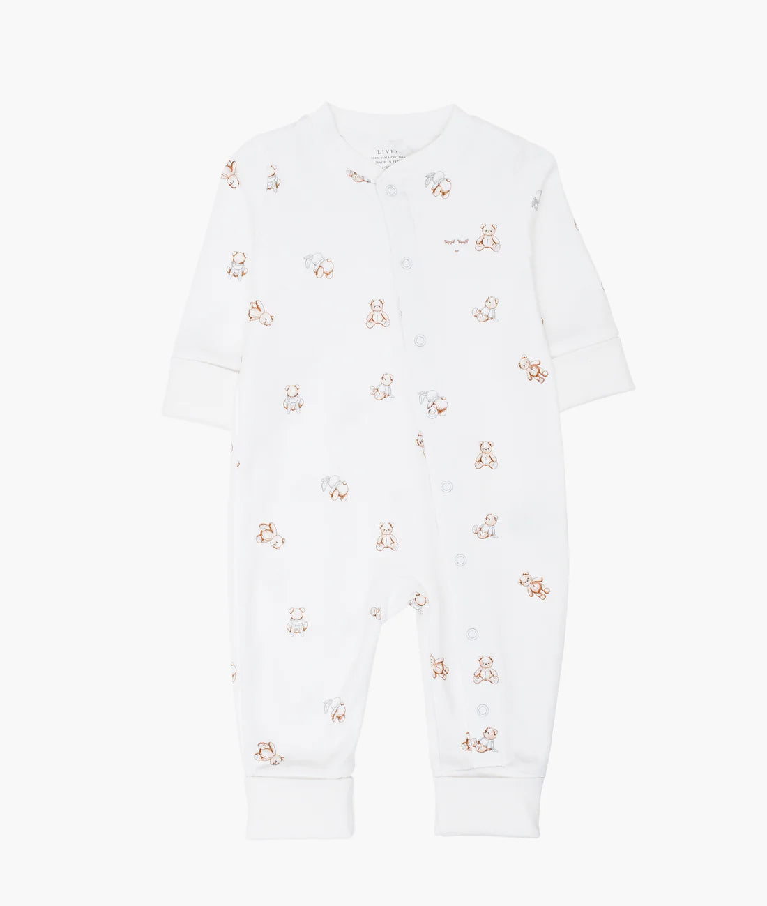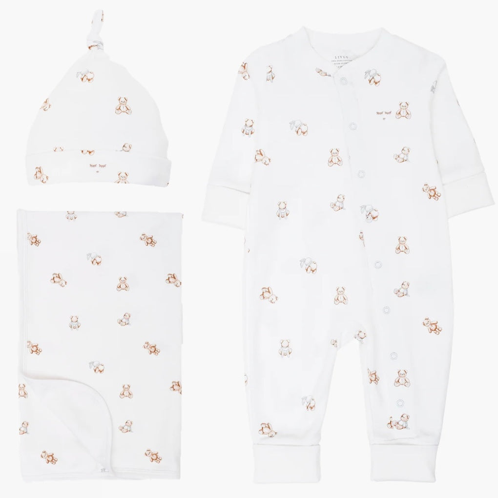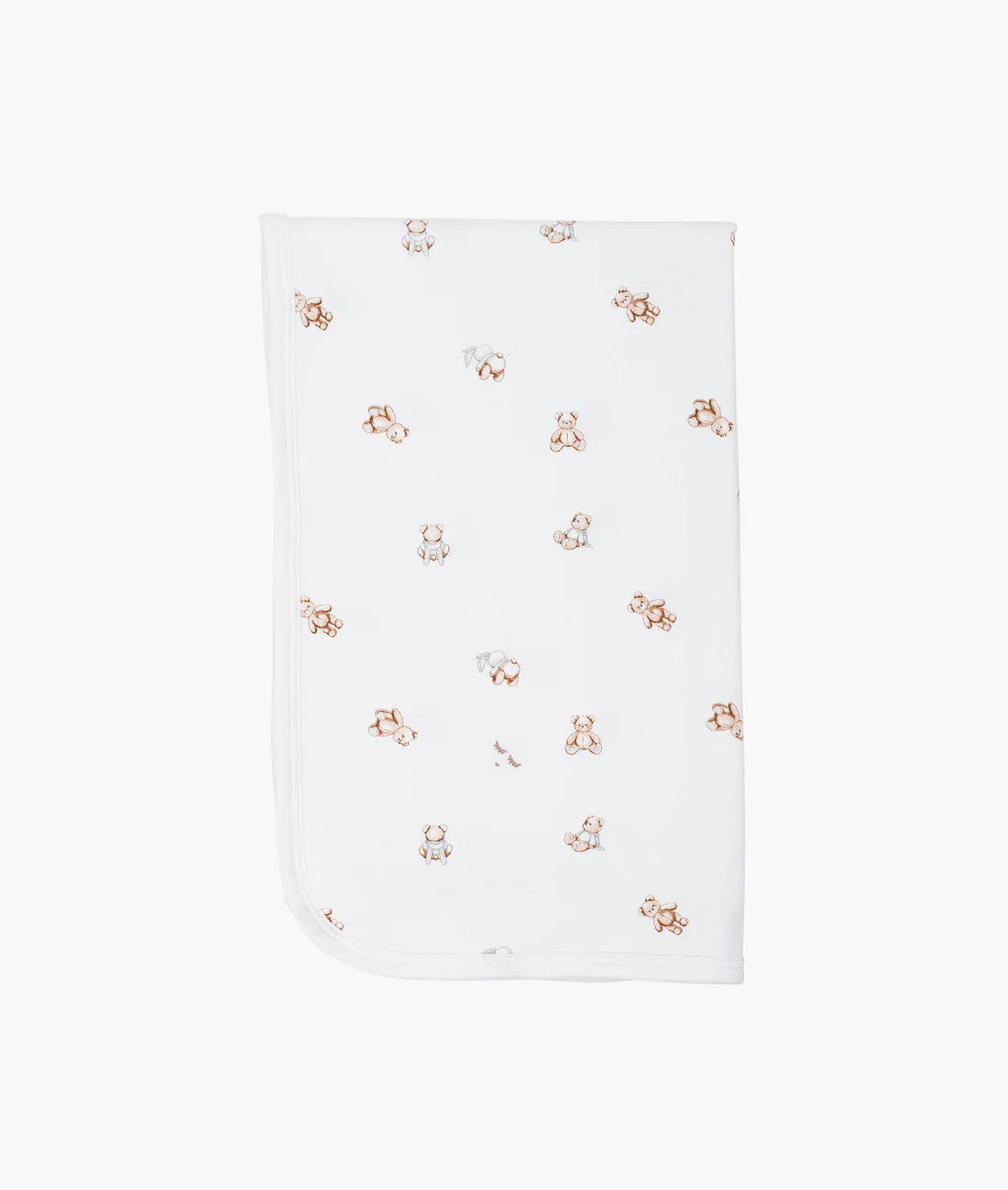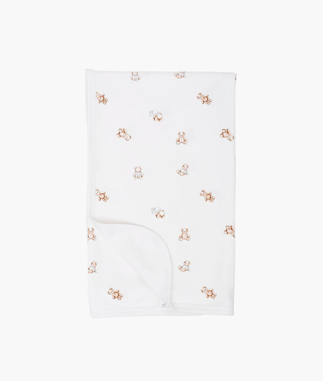 Our classic Overall, Hat, and Blanket Set has become a go-to piece for mommy's all over the world. With nickel-free snap buttons across the front and cuffs that will fold up and down depending on your baby's needs, our overall is pretty much the number one thing on our must-have list! Snuggle baby off to sleep with the softest blanket in our dreamy Teddy Tay print. Versatile and comfy, our cotton blanket is a must-have essential, and we tell all expecting moms the same thing: Add this to your registry! Your little nugget’s heads is the most delicate part of their little growing body. Keep it warm and protected in our soft Tossie hat. The Pima stretch cotton and adjustable knot allows for a custom fit for your newborn.