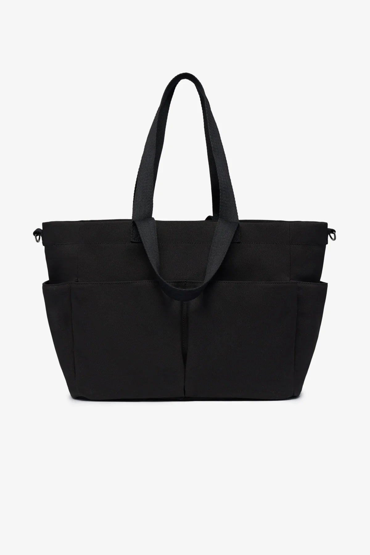 Introducing our new highly-packable, effortlessly cool carry-all tote. Crafted from 100% recycled polyester derived from end-of-life textile waste, this multi-pocket tote is perfect for either clipping to your buggy for easy reach organisation (stroller clips can be purchased), for nonchalant hangs - using either one of its three (yes 3!) strap options, or can be stashed under your buggy in the underseat basket ready for action. Consciously designed with an un-lined, fuss-free interior to offer maximum space with huge packing potential, and as a lighter-weight adaptable bag option for parenting and beyond. Its minimal aesthetic is deceptively useful - externally the tote features 6 spacious slip pockets that can organise (aka hide!) all your parent and baby essentials, as well as hosting an internal drop pocket and key fob. Gunmetal hardware has been applied for an elevated finish - this totes understated design has lux undertones and useful function. Co-ordinating item available: the T+M canvas caddy organiser has been designed so it can slot inside the canvas pocket tote. Utilizing clever, modular design so you can max out your tote interior, double your function and carry your caddy in style.