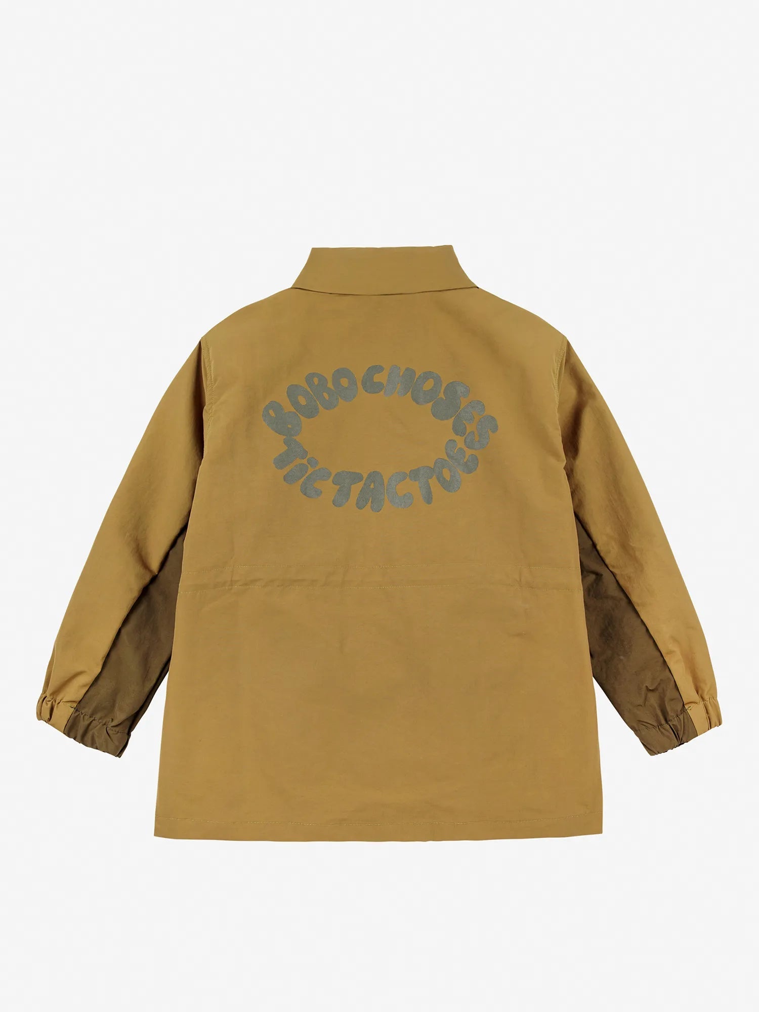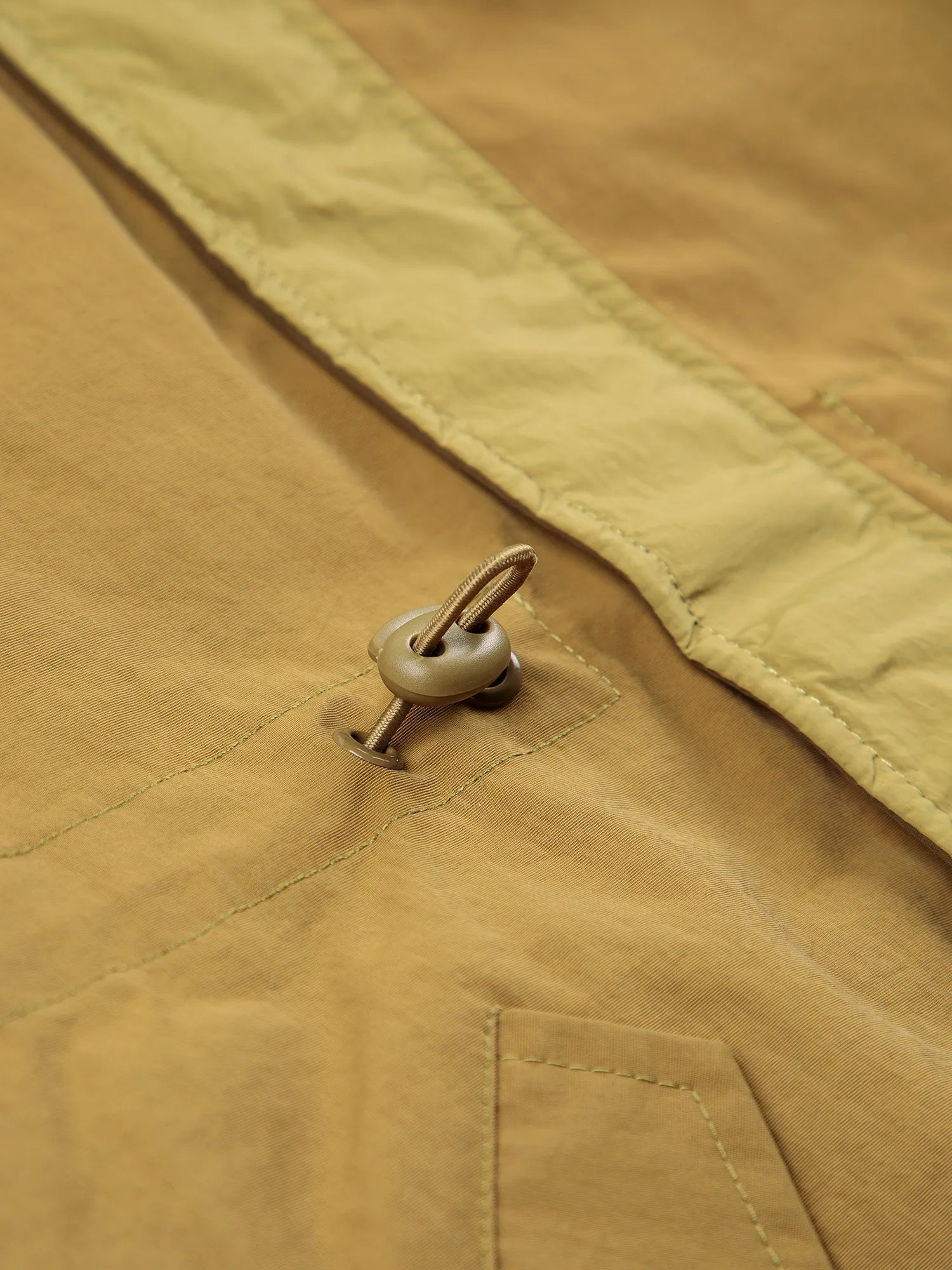 Khaki raincoat. Designed with hooded, long sleeves, adjustable waistband, front snap fastening, zipped, elasticated cuffs, over knee length, flap pocket and relaxed fit. Made in China.