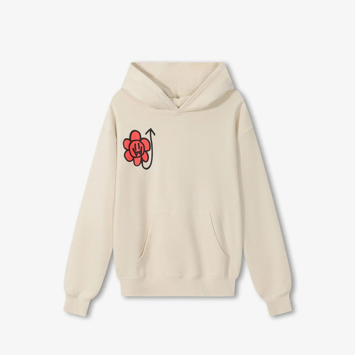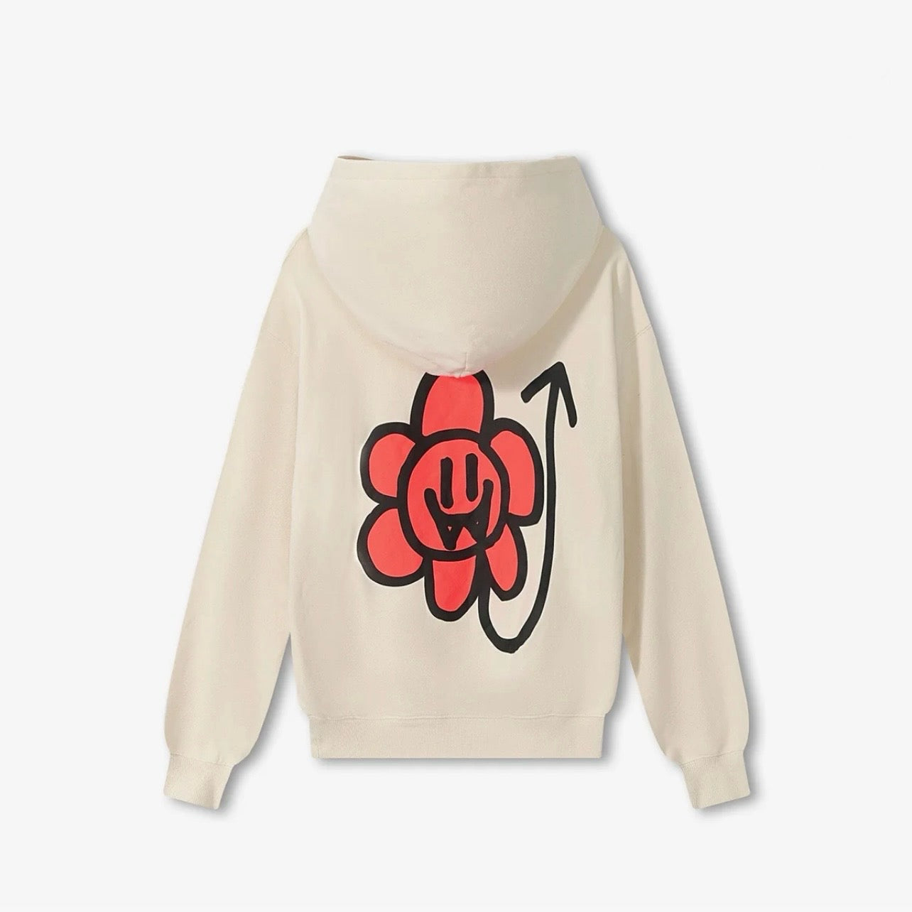 - Moody Hoodie, super soft fabric, oversized fit, kangaroo pocket at the front, suede Laboosh print at the front and large white print on the back, "Moody" Flower in suede print, ribbed waistband and cuffs