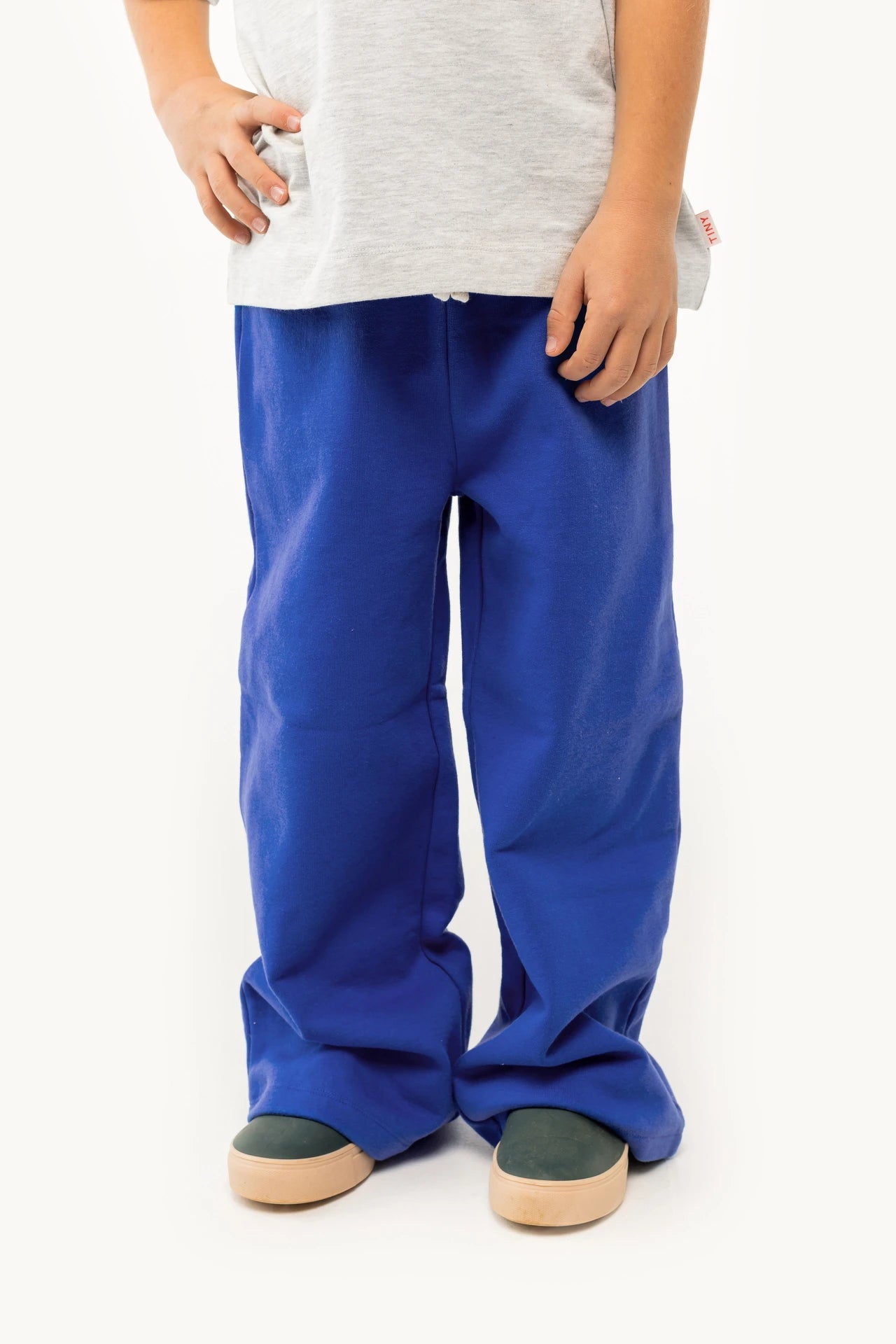 These ultramarine wide leg pants with TINY logo are made from 100% cotton with an elasticated waistband and an adjustable drawstring for comfort and a secure fit.