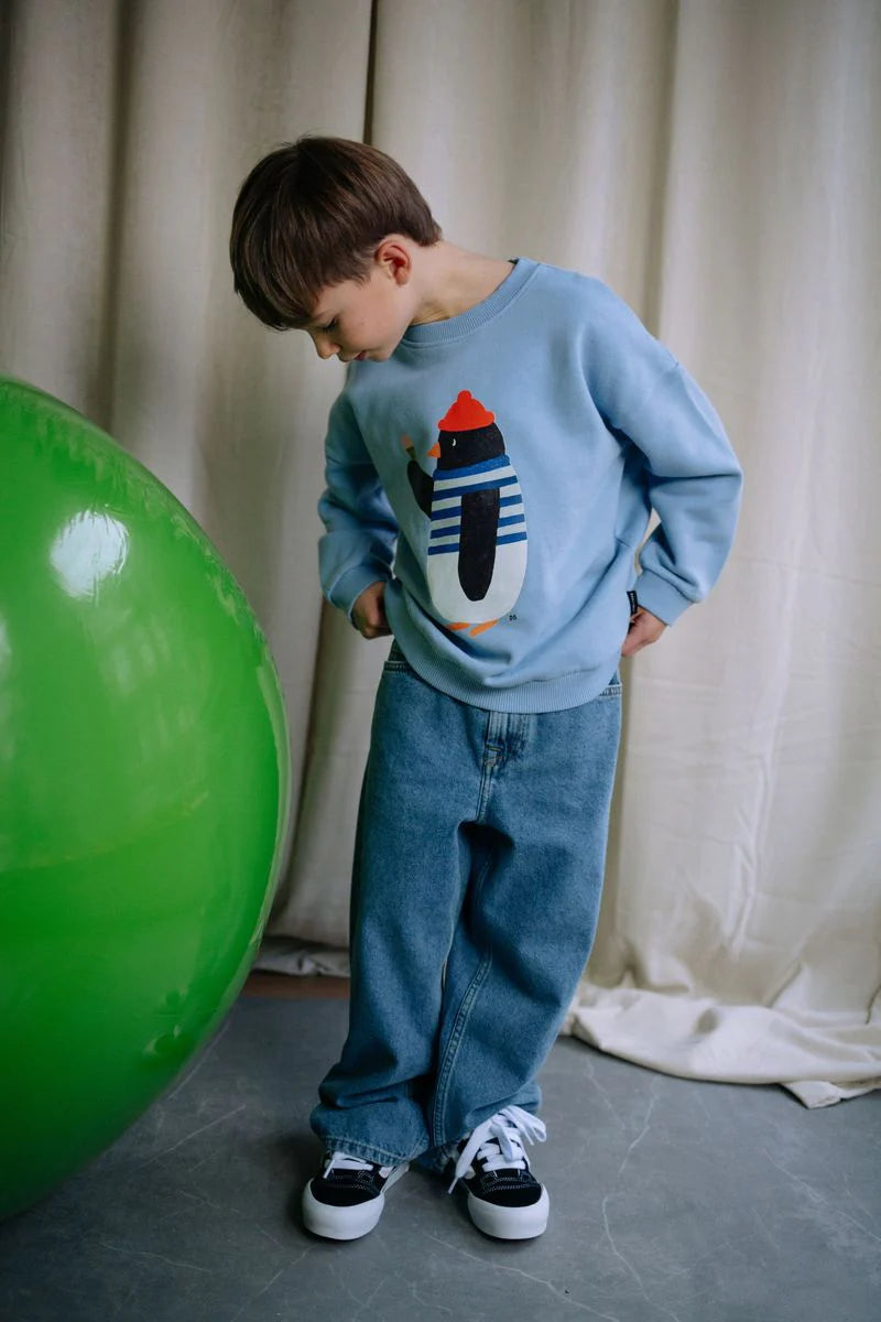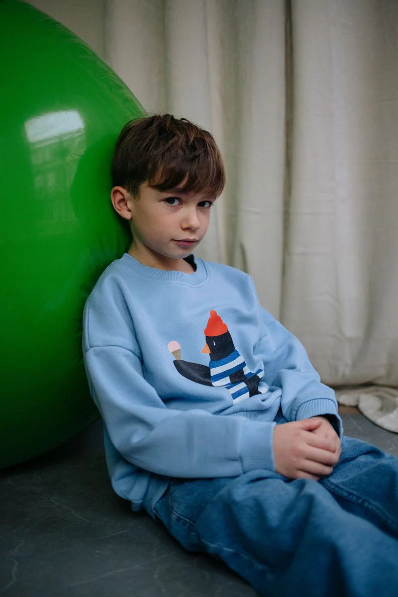 This cosy sweatshirt is made from 100% organic cotton, featuring our friendly waddles the pinguïn print. Designed with a classic fit and finished with soft ribbed cuffs and hem for all-day comfort.