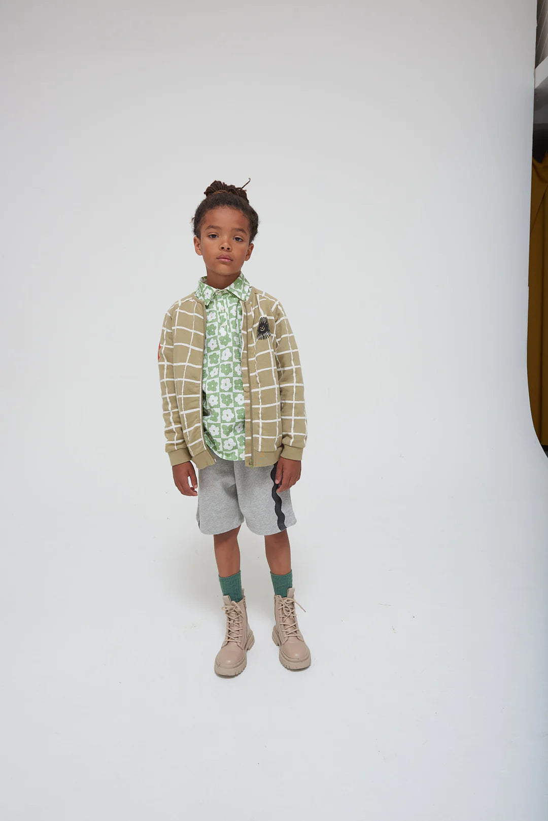 These soft grey shorts, made from organic recycled fibres, feature two waves down the front legs, 'RELAX' on the right back leg and our signature embroidered superhero mask below the waistband. With an elastic waist, back pocket and easy fit, they make for a comfortable option for freewheeling explorers.